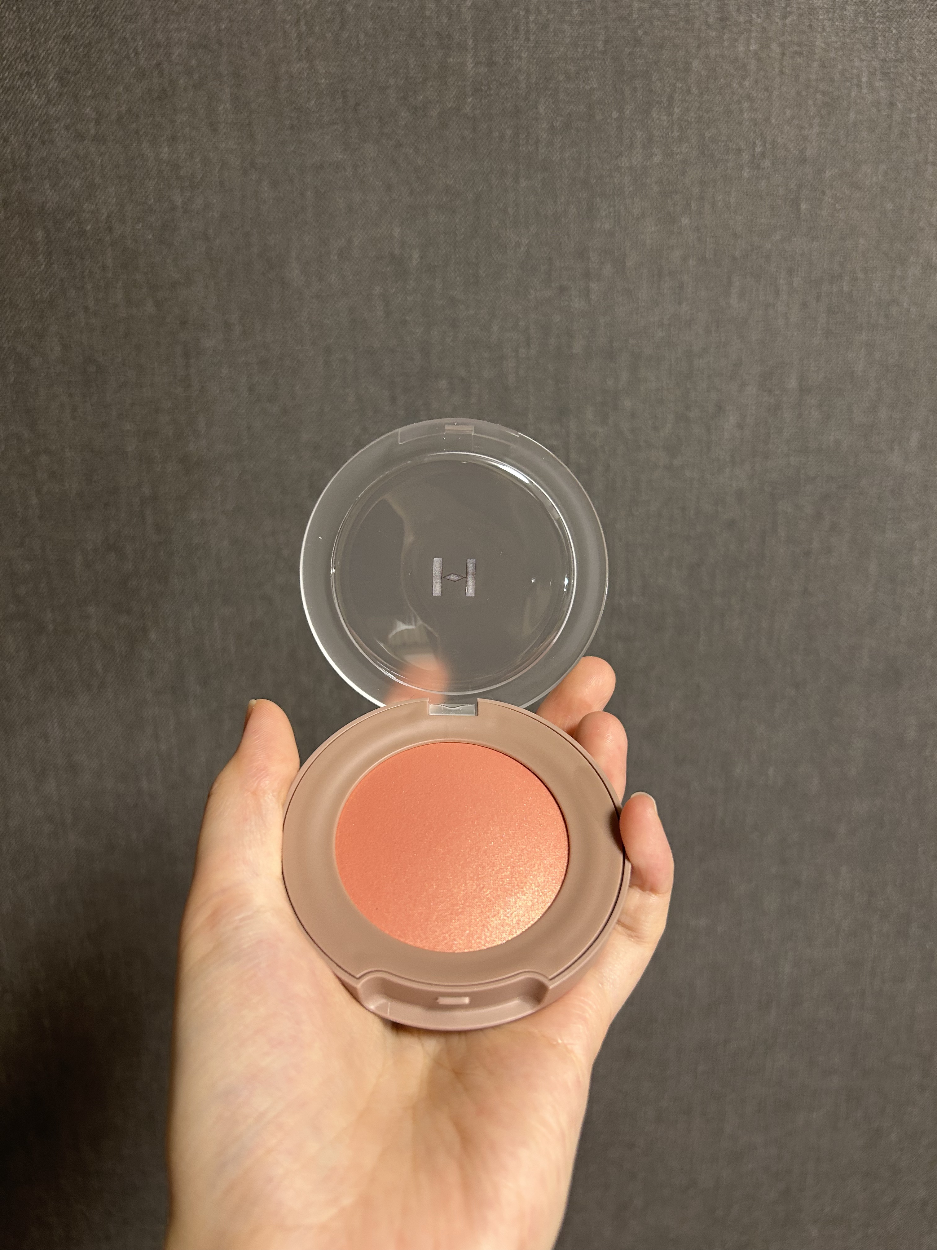 見た目、イエベ春向きの色やけど イエべ秋の私でも全然馴染むし むしろ使いやすい!!! ゴールドパールが入っているから 肌がかなり綺麗に見えます🙆♀️ チークの元々の色の コーラルが 主張が強すぎないので ほんのり色付く感じで、 元のメイクを邪魔しない🥹