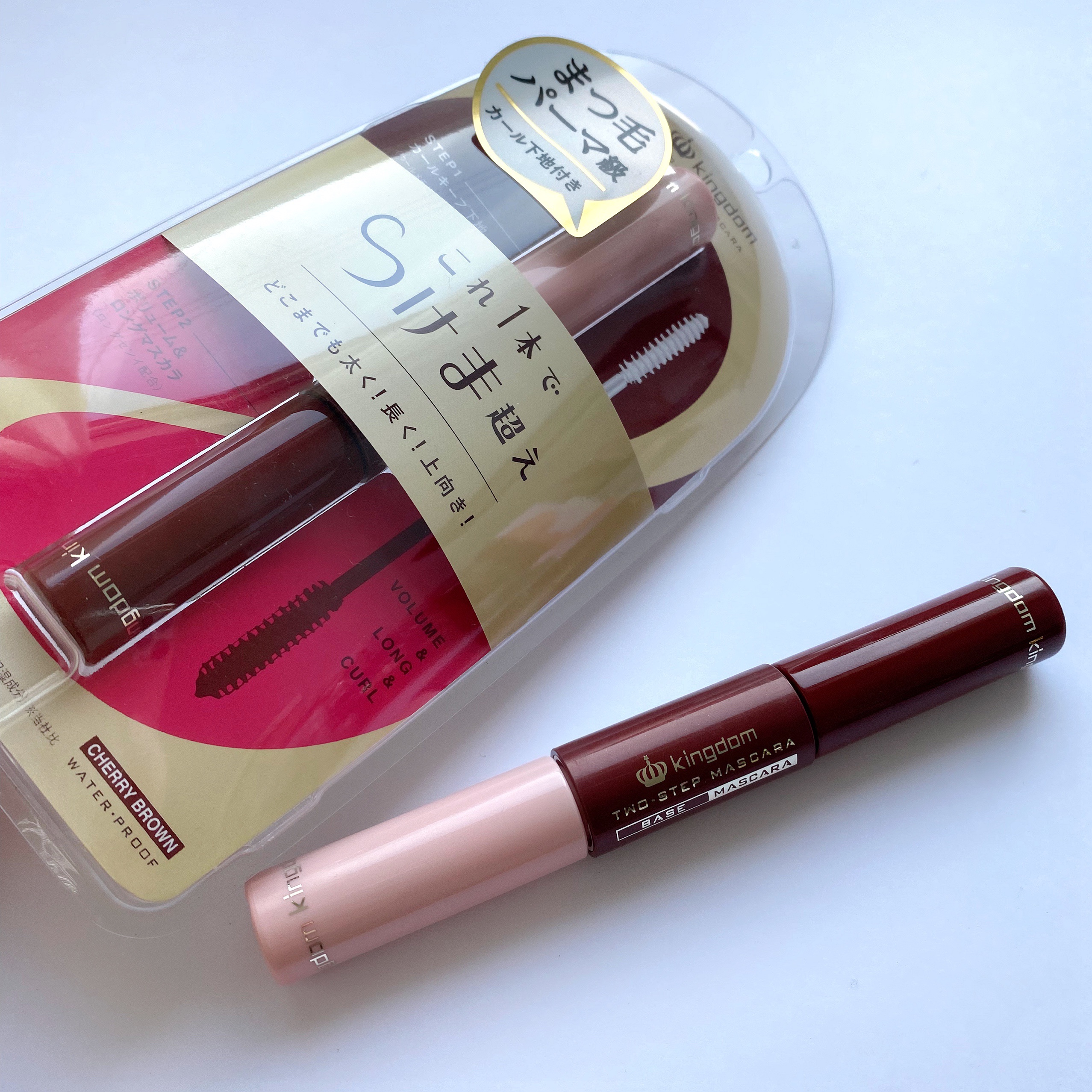 仕上がりを見て笑いが…キングダム ツーステップマスカラWPチェリーブラウン ¥1600+tax下地とマスカラが1本になった商品です。まつ毛美容液成分(保湿成分)も配合との事なので、まつ育大好きな私にとってはたまらない。ビューラー等で上げたまつ...