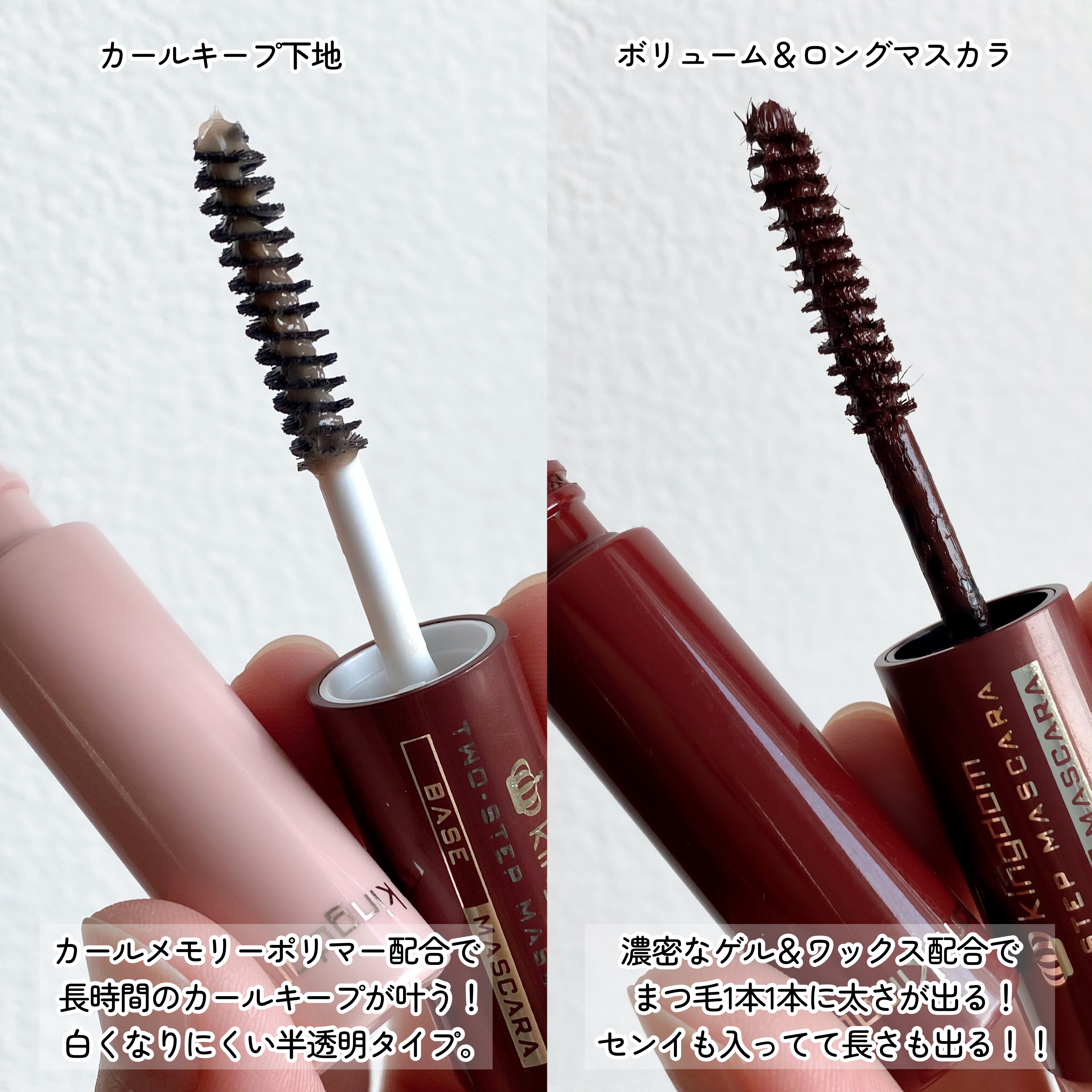 KINGDOM(キングダム)ツーステップマスカラWPこれ一本で下地、マスカラ、まつ毛美容液の役割を果たしてくれる優れもの😊これ一本で完成するので、旅行先やお泊まりの時に重宝します😆✨カールキープ下地は透明でキープ力が高くなるので良かったです😊...