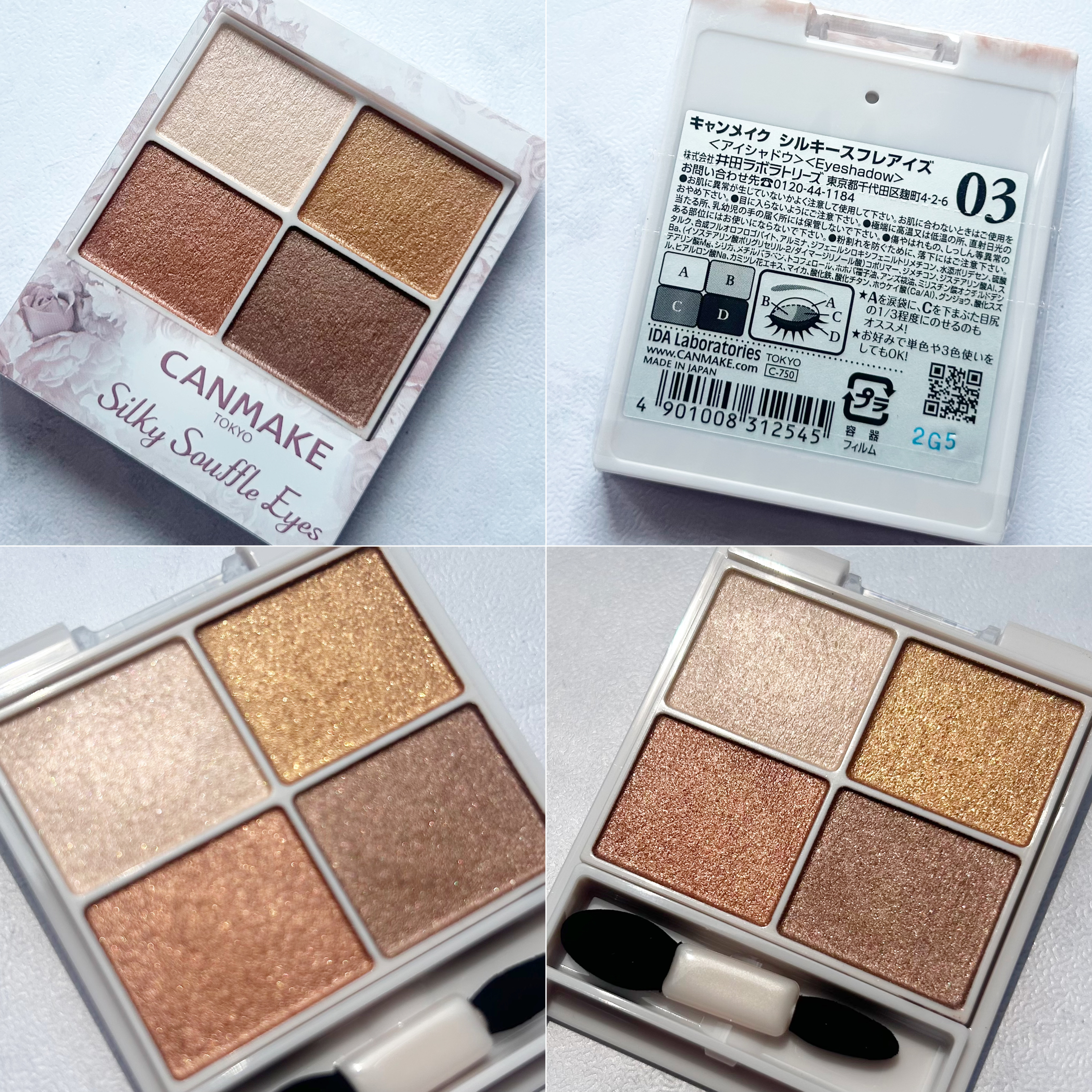 キャンメイク シルキースフレアイズ 03レオパードブロンズ どイエベの私にドストライクの配色 右上のカラーが 顔を明るく魅せてくれて好き オールシーズンいける というか毎日いける 大好きアイシャドウです☺️
