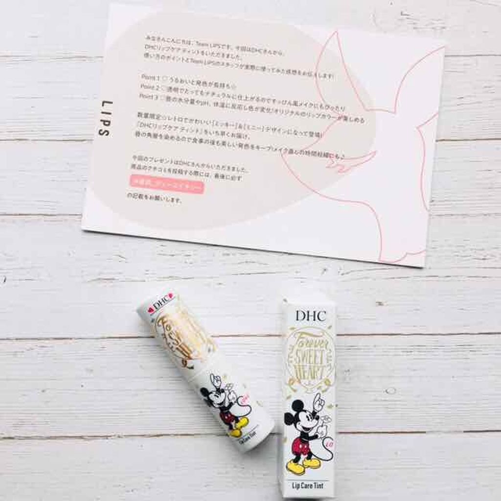 【DHC】【数量限定】DHCリップケアティント❣️税込1242円数量限定で『ディズニーデザイン』が登場したそう!(写真二枚目)ミッキー&ミニー♡2つを合わせて並べると、真ん中のハートの中に「LOVE」の文字が出てくるみたいです✨私が購入したの...