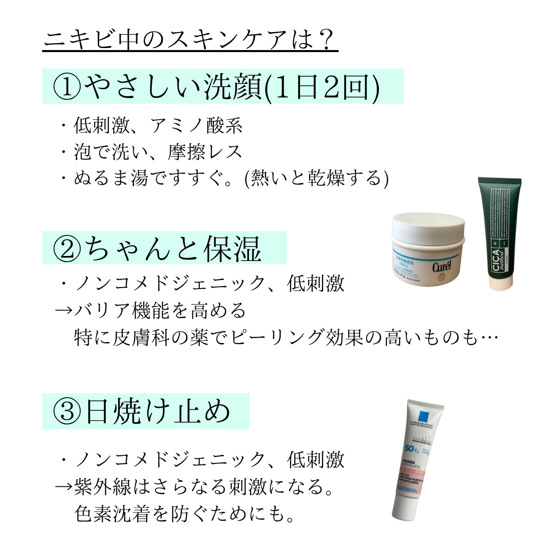 6月に昨年末ぶりの赤ニキビが大量発生しました…。次から次へとできて、なかなか治らない…。そこで今回はニキビのできる原因と対策についてまとめました!ニキビで同じように悩んでいる人に、とにかく、大きな声で言いたいことは、「今すぐ皮膚科に行って」です!4月に日本化粧品検定協会の現役皮膚科医によるニキビ講座を受講した際に、先生が繰り返していた言葉です。早めに行くことで、ニキビの悪化も防げ、跡も酷くなりにくくなるとのこと。そして長期的に通うことで、ニキビを根本から治療して、ニキビのできにくい肌を作れるとのことでした。皮膚科にいくことが第一、特に皮膚科の専門医の先生を受診することをお勧めしていました!今回は自分への戒めとしても、ニキビの原因と気をつけたいことをまとめました!最近、ニキビで荒れている時に愛用しているコスメも載せておきます!これを塗布することでニキビが治るわけではないのですが、私のお気に入りです。・キュレル モイスチャーバームジャー ¥1,980→皮膚の乾燥や皮剥けが気になる時に◎ (医薬部外品)※セラミド機能保湿成分:ヘキサデシロキシPGヒドロキシエチルヘキサデカナミドとにかく肌が保湿されるため、乾燥のひどい時におすすめ。保湿により、バリア機能も整えてくれる。・コジット シカメソッドクリーム ¥1,650→ニキビや肌荒れを防ぐ (医薬部外品)※抗炎症有効成分:グリチルレチン酸ステアリル肌馴染みがよく、柔らかいテクスチャーなのに、しっとり。朝にも使いやすい。・ラロッシュポゼ UVイデアXLプロテクショントーンアップ ローズ+¥3,960→ニキビのもとになりにくい処方(※全ての人に肌トラブルが起きないわけではありません)肌がパサつかずに使える日焼け止め。ニキビも紫外線は大敵。・DHC 薬用アクネケアコンシーラー ナチュラルオークル01 ¥1,572→ニキビ跡もカバーでき、日焼け止め効果もある。(医薬部外品)※ニキビや肌荒れを防ぐ成分:イソプロピルメチルフェノールカバー力もあり、日焼け止め機能もあるため、ニキビを目立たず、守れる。参考になったら嬉しいです!#ニキビ #毛穴 #ニキビケア#アクネケア#ニキビ跡#薬用#保湿クリーム#バーム#セラミド#シカクリーム#CICA#シカ#トーンアップUV#トーンアップ下地#スキンケア#ドラコスこれ買って