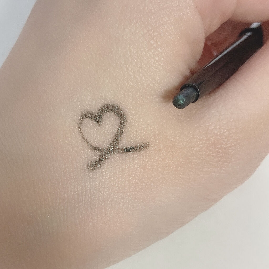 #スウォッチCHANELスティロユーウォータープルーフ948ジャングルグリーン緑キャトルと合わせて購入しました❤️手に書いてみるとカーキですが、結構ブラックに見えます😂ブルーの偏光パール?ラメ?が入ってるのかな?🤔緑キャトルと合わせて使うとめちゃくちゃかわいいです🥰色自体はウインターさん向けだと思います。ペンシルタイプのアイライナーはすぐ落ちるのであまり好きではないんですが、こちらはかなり持ちがいいです👍スルスルかけるのでそこも良いです💮