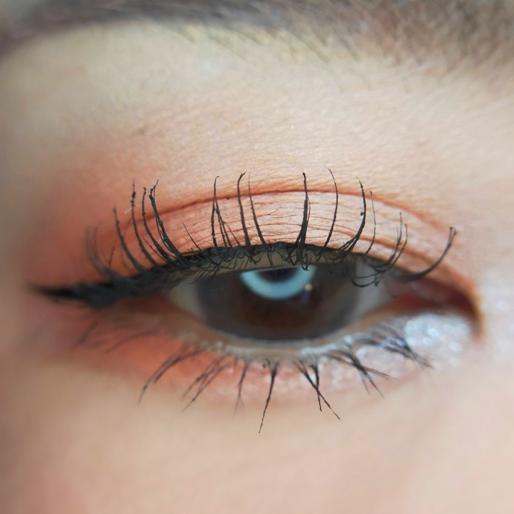 ETVOSのシュガーグレープ🍇をベースに使って、内側からじゅわっとグレープカラーが滲み出す感じで!上からピーチカラーを重ねた部分も、パープルラメ感が綺麗✨ MACのスモールアイシャドウ【クランベリー】【シェルピーチ】で縦割りにして、ラズルの【マンダリンレーザー】を重ねてキラキラに🍊✨✨ テーマがあると、眠らせてたコスメが活躍してくれるの、いいね😍❤️
