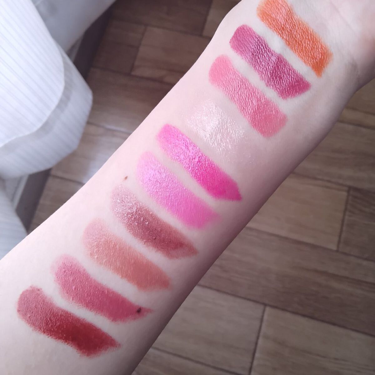 今日は手持ちリップの中で、夏におすすめの6本をピックアップして、紹介したいと思います!UZUとkissばっかです、ごめんなさい🙇全体的にツヤ感がある、グロウタイプで、シアーカラーやグロス、ラメタイプなどをチョイスしました!どのカラーも夏にぴったりのかわいいツヤカラーなので、ぜひチェックしてみてください♪────────────今回チョイスしたカラーは3つのカラーが明るく華やかな海やプールなどに合うザ夏カラー、それと夏らしいオレンジで大人っぽさもある万能使いやすいカラー、最後に暗めのカラーで夏の終わり秋の始まり向きカラーとそれぞれシーン別に選んで見ました!<それぞれのカラーの夏の推しポイント>シーン別カラーを、それぞれのカラーのポイントをレビューしたいと思います!◆明るく華やかな海やプールなどに!ザ夏カラー!◆UZUリップトリートメント オレンジ 夏にぴったりな明るいオレンジの高発色グロス。 キラキラのラメパールがたっぷり入って派手さもあり、グロスなのでちゅるんと仕上がる。キスヴェールリッチルージュ 07CherryParty 目を引く派手めピンクに、これまたギラギラした金属風のピンクラメがたっぷり入ったカラー。 夏らしいド派手でギラギラした、インパクトあるリップに仕上がる。 ティントじゃないけど、色が残りやすい。キスヴェールリッチルージュ 09PinkPrism しっかりした青みピンクに、ブルーの偏光パールが入ったカラー。 偏光パールで見る角度でピンクだったり紫だったり、色が変化して見える宇宙のようなリップ。 紫がかって見えるので、メイクによっては顔色が少し悪く見える。◆オレンジで夏らしさも大人っぽさもある万能使いやすいカラー◆キスヴェールリッチルージュ 01Mandarinu マンダリンオレンジ。 華やかなオレンジで、すこーしブラウンを加えたような落ち着きのあるカラー。 オレンジで夏らしさと大人っぽさを兼ね備えたカラー。◆夏の終わり秋の始まり向きちょっぴりダークなシアーカラー◆キスヴェールリッチルージュ 10MysteriousShine やや暗めのシアーブラウン。 細かいピンクやシルバー、ブルーなどのラメがたっぷり入っているので、つやキラな仕上がり。UZUリップスティック<トウキョウ>プラム シアーカラーで透け感あるほんのりプラム。 暗めのカラーなので、落ち着いた大人っぽい印象に。 細かいラメが入っているためツヤ感があります。今回紹介したリップは手持ちリップで、私的夏におすすめしたいカラーです!夏リップを新しく買いたい方や挑戦したい方にぜひおすすめしたい!お気に入りで良くこの時期使うのが、キスのマンダリンとチェリーパーティー。どちらも明るめのしっかり発色するリップですが、案外馴染みやすい使いやすいカラーでおすすめです。それから、今年積極的に使っていきたいのは、UZUのリップトリートメントのオレンジグロス!こっちはすごく高発色で、ラメもたっぷり入ったグロスで、こってりしたテクスチャでちゅるんとリップが仕上がります。案外手元に無かったタイプのリップなので、今年はガンガン使いたい!この中ですこーし人を選ぶのはキスのピンクプリズム。かわいいカラーなんですが、青みが強いので、中々トータルでメイクを仕上げるのが難しいカラー。私も気に入ってはいるんですが、うまく使いこなせてないので、今年はお気に入りの夏メイクにしていきたい!それぞれ、夏らしい派手めだったり、少し変わり種なリップをチョイスしてみました。今までに挑戦したことないメイクやリップに挑戦出来ると思うので、ぜひチェックしてみてください♪✼••┈┈••✼••┈┈••✼••┈┈••✼••┈┈••✼#コスメ #コスメ好きな人と繋がりたい #コスメ好きさんと繋がりたい #プチプラコスメ #プチプラ #メイク好き #コスメ集め #かわいい #かわいいコスメ #リップ#キス #kiss #ヴェールリッチルージュ#夏リップ#つやリップ #口紅 #派手め #オレンジメイク #夏 #夏コスメ #リップグロス #ド派手 #ラメメイク #ビビッドピンク #お気に入り #シアーカラー #ヴェールリッチルージュグロウ#ラメ愛好会