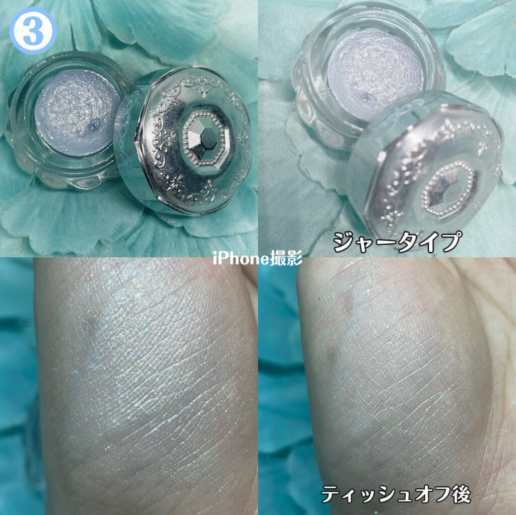 ┈┈┈┈┈┈┈❁❁❁┈┈┈┈┈┈┈┈JILLSTUARTジェリーアイカラー14twinklesea┈┈┈┈┈┈┈❁❁❁┈┈┈┈┈┈┈┈結構前に買った限定色です。08番のお色に似てるみたいです!08の方が青ラメも沢山入ってるみたいなので気になる方はぜひ!このアイシャドウとにかく見た目がかわいい!持ってるだけで気分が上がっちゃいます🌟匂い、発色もよく、ラメもすごくて艶のあるアイシャドウです!今流行りの韓国のグリッターは派手で挑戦しにくいかもという方使っていただきたい!!上品な感じで艶と濡れ感がでます。涙袋にのせるだけでうるうるおめめに🥺塗りすぎると厚塗り感、ダマっぽくなるので少量を伸ばした方がいいかもです。色展開も沢山あるのでプレゼントとかにしたら喜ばれるのでは💭#ジルスチュアート#ジェリーアイカラー#デパコス#JILLSTUART#アイシャドウ#青ラメ_アイシャドウ#青ラメ