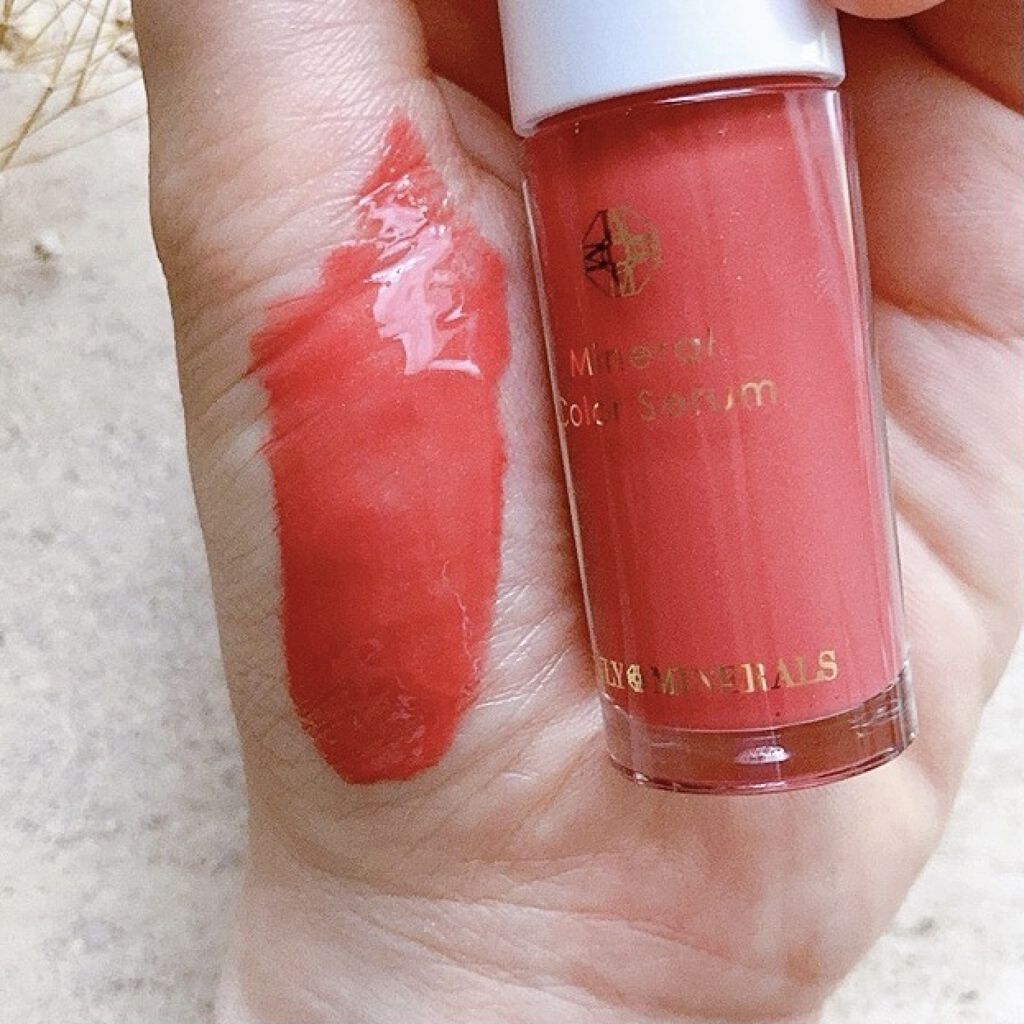 ONLYMINERALSミネラルカラーセラム01レッドコーラル唇が乾燥してる、皮剥けしてるなっていう日によく使用するリップ💄唇美容液のような感覚で塗れて色が鮮やか💓私はレッドコーラルを使用していますがとても綺麗な色で、パッキリと発色するためティッシュオフしながら色味をみながら使っています。プランパーは少し感じられて、ほんの少しだけ気にならない程度にスースーするのと清潔感のある香りがします。使用感も良く、色味もとても可愛くてお気に入り!ベタベタするタイプなのでマスク生活には厳しいかもですがマスクを使用しないところで使うと美容液効果も感じられていいかもです⭕️