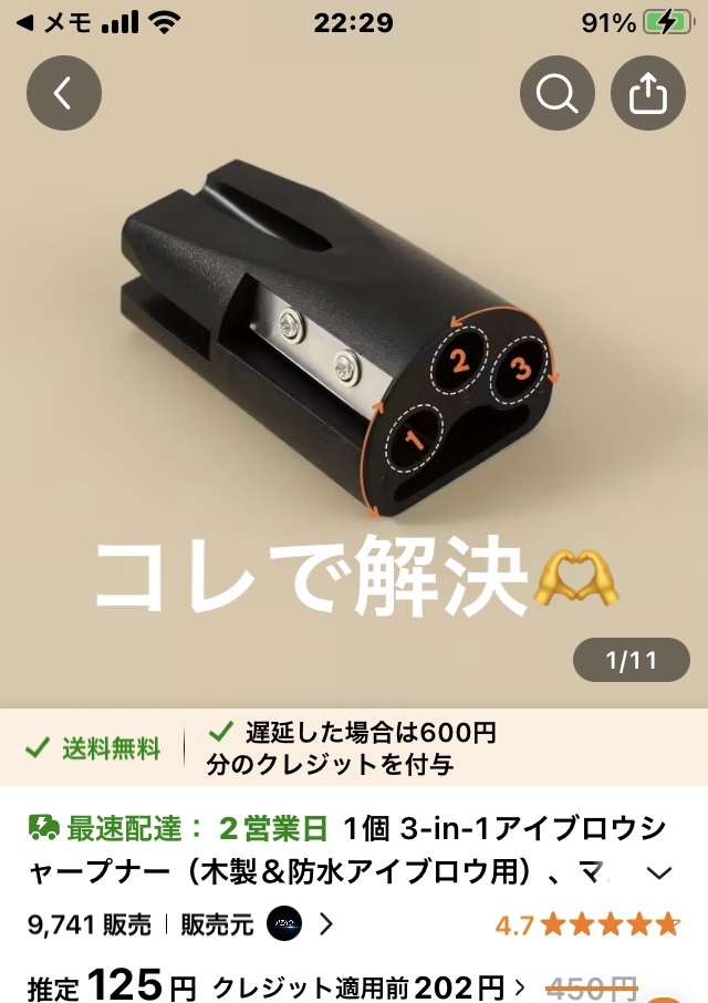 temu購入品です♡商品名1個3-in-1アイブロウシャープナー(木製&防水アイブロウ用)、マルチ機能プラスチックダックビル、アイメイク、コスメツールhttps://share.temu.com/L497youCsaA購入価格 ¥128(te...