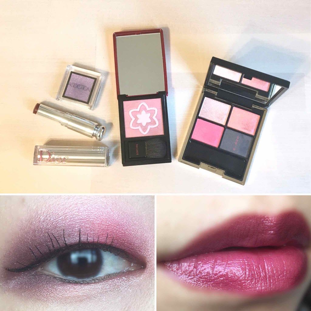 #今日のメイク🎀#SUQQUデザイニングカラーアイズ125洸惚HIKARIBOKE🎀#ADDICTIONザアイシャドウ(137ミアヴィオレッタ)🎀#コスメデコルテパウダーブラッシュm(PK805)🎀#Diorディオールアディクトステラーシャイン(881BOHEMIENNE)SUQQUの去年の夏パレット、相変わらず綺麗な色〜!上瞼全体にピンクをしっかり入れて、目尻にブラックを重ねてパープルに。濁らず綺麗に混ざるのが大好き❤リップはパープル感が欲しかったので、Diorのステラーシャインの限定カラーボヘミアンを。ラメがチラついてとっても可愛い。#メイク写真#映えコスメ