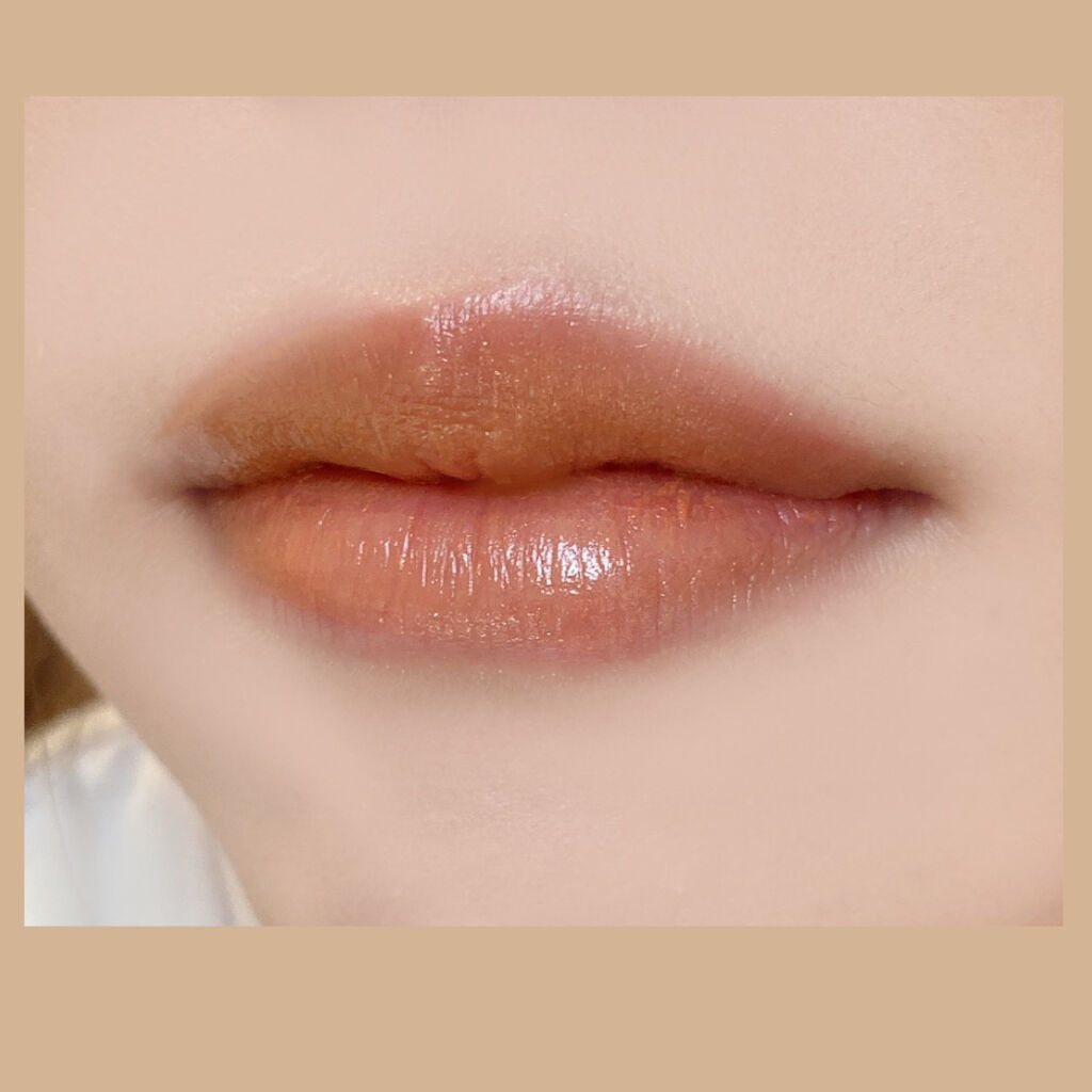 マットリップだけど、みずみずしい サラッとしたテクスチャー💄 オレンジがかったブラウンで ナチュラルに塗ると ほんのり透け感がでます😊 ティントですが色持ちは良くないです🤣
