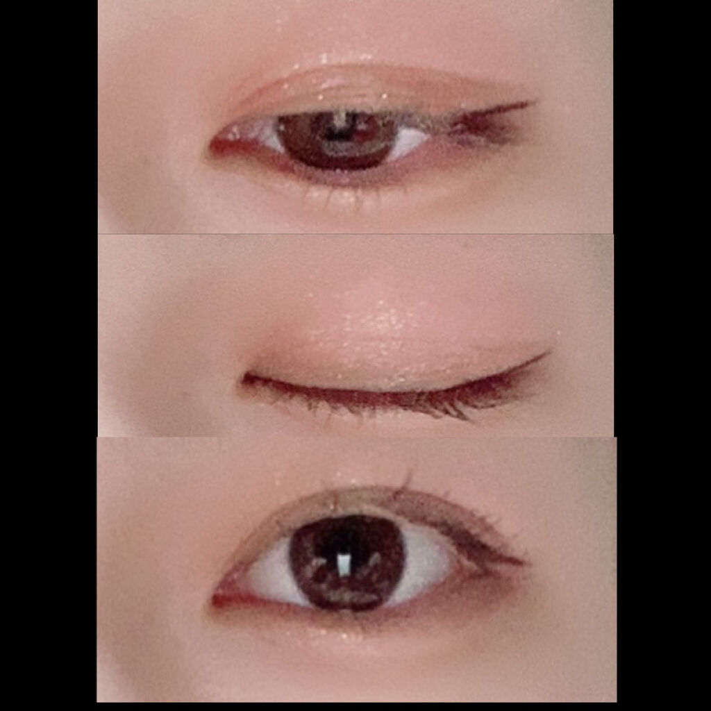 バーガンディアイメイクまだ試行錯誤中だけどアイテムが天才なのと割と可愛くできたので。①EleganceCRUISEアイカラープレイフルGR04を上まぶた全体に広げる。ラメが広がって世界一可愛いベースになる。カーキはほんのり色づく程度でクールな雰囲気と抜け感が上手に作れる。②SUQQUデザイニングカラーアイズ03紅雅の右上のグレージュを①と同じ範囲の上まぶたに塗る。この宇宙一可愛くて綺麗なグレージュが仕込んだラメのおかげでチラチラ光って天才可愛い。③SUQQUの左下のピンクを下まぶた中央~目尻と上まぶた目尻のキワに入れる。最初に三角ゾーンのキワにガッツリ置いてぼかして、残りで上まぶた目尻をトントンして、最後涙袋を一撫でするくらいが丁度良いかな。④INTEGRATEスナイプジェルライナーシャドウタッチRD550ボルドーレッド良い色すぎた~~~~二重幅埋まるくらい太めにライン引いてガッツリ目の横幅延長、下まぶた目尻~中央もしっかり引く。本当に色可愛い。ラメも入ってるし失敗もしにくい。ちょっと太いから細かいとこは難しいけど、発色良くて落ちなくて良い。黒アイライナーはいかにもこれは睫毛です~みたいな感じで書く。細めに、延長しすぎず。下まつげのマスカラはexcelのクランベリー。上睫毛に使うと色素薄いまつ毛になる。可愛い。下睫毛目立たせたくないときは下まつげだけこれにする。チークはCOSMEDECORTEAQブラッシュ02vintageorchidリップはrom&ndのFIGFIG