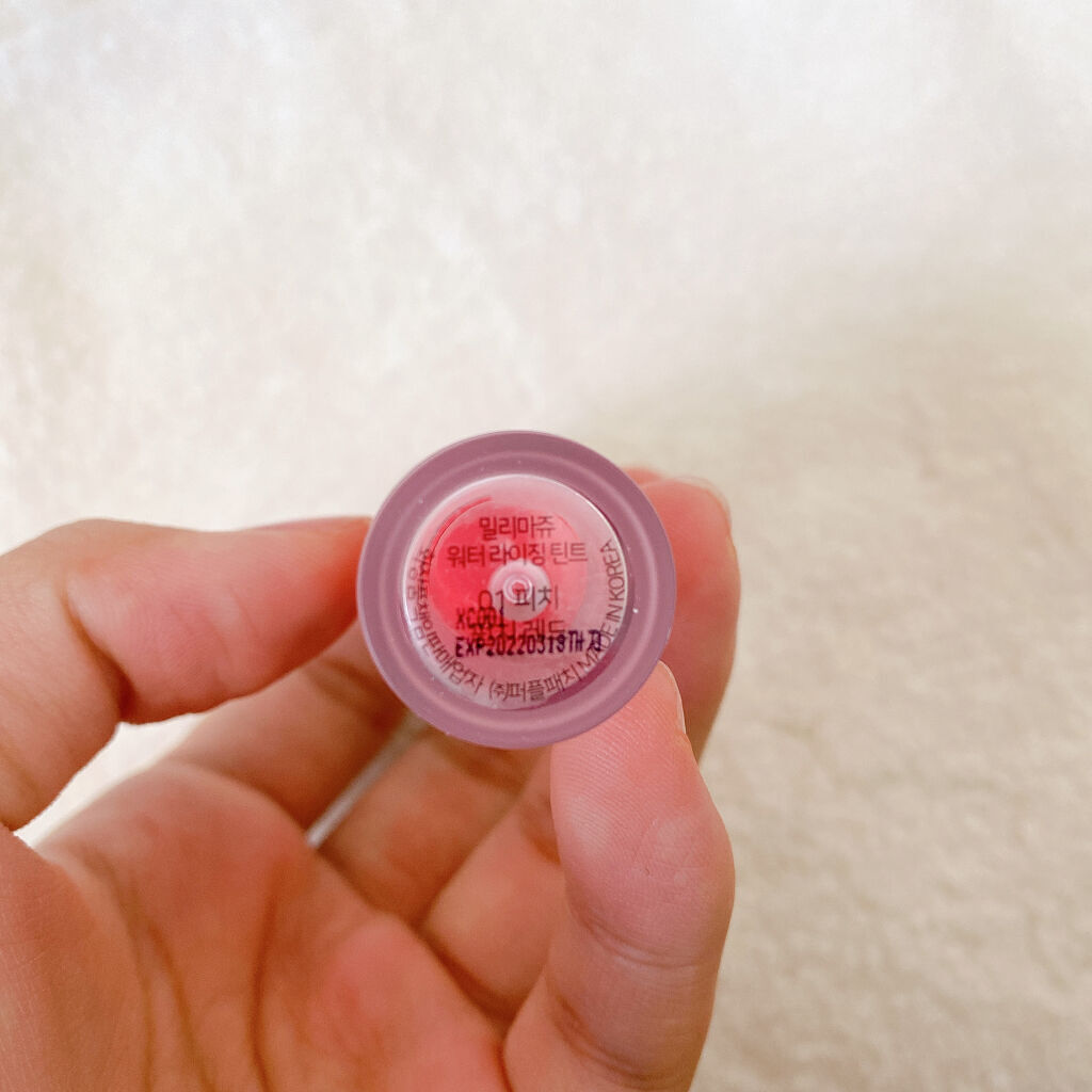 ⚠️2枚目唇の写真あり⚠️あまり上手く撮れなくて、カバー写真ではなく2枚目にしてます😢個人的にオピュの水光ティントよりも水光という言葉が合っていると思うティント🥰❤milimageミリマージュウォーターライジングティント01ピーチパンチレッドです🍑💓投稿する前にLIPSのクチコミ調べてみたら1件しかなかった😭ミリマージュのブランドタグがなく、申し訳ないですがオピュのブランド名にさせていただいております😭確かにまだ、メジャーなブランドではないけどめちゃめちゃうるちゅるになるし多分好きな方多いと思うのでレビューします🥺私は明洞のロッテヤングプラザで日本円にすると900円ほどで購入しました!!プチプラ!!ディスカウント😊って可愛い定員さんが言っていたので定価はもう少し高いのかもしれないです!私がベラのシューティングスターを飲んでいたらマシケッター🥺💖ってとてもニコニコして可愛らしい店員さんでした(᷇࿀᷆)w私はミリマージュというブランドは全く知らなくて、韓国に留学されている方のTwitterを見て知りました🌟うるうるしたリップが大好きなので気になりすぎて去年の夏、韓国旅行の際に早速GET😌やっと手に入って嬉しくて買って速攻つけましたwwwそしたらもう!!いや、ほんとめっちゃうるうるやないかーい!友達にもえ、これうるうるやばない?めちゃめちゃ可愛くない??無理!!!!!って言ってしまったくらいw発色凄いしステインすごい!!!めちゃめちゃうるうるする!!本当にグロス塗ったみたい!!なんか塗って少し経つとクリアグロスのように浮き上がってくるような特殊な効果(画像3枚目)があるみたいでうるうるになるようです💋少し残念な点もあります!まずは、個人的に残念かなーと思った点!色味はピーチとつくのでピンクが強いかと思っていたんですが、思ったより赤が強くてはっきりリップになります…!韓国でははっきりした色のリップの子達が多いから気にせずつけられたけど、日本だとつけるのを少し躊躇する発色の良さ!w2つ目は、容器から漏れる😭😭サラッとしたテクスチャーなのでオイルっぽいものが漏れてきます……使ってると1週間もしないうちに蓋まわりにティントが上がってきて?ベッチャベチャwww容器の改善を求む!!!!!以上の2つは残念😭!前は3色展開だったけど、今は6色ほどあるみたいです🙏当初はまだ日本では買えなかったんですが、調べてみるとDHOLIC(クリマレ)のサイトや店舗でも購入出来るようになっていて970円ちょっとでありましたー❤!ローズベージュみたいなカラーがでてたので、店舗に見に行こうかなーと思っています🥰あともう少しナチュラルなピンクカラーがでたら嬉しいなーと思います!w#メイク写真#スウォッチ#映えコスメ#ティント#韓国#韓国コスメ#ミリマージュ