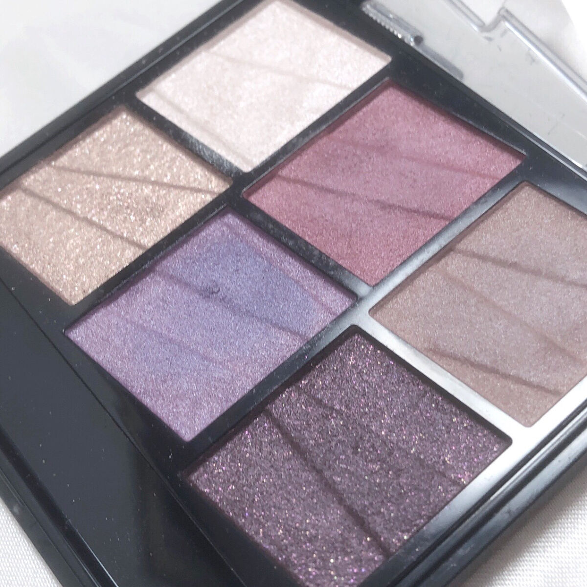 𓊆儚げで憂いだダークなパレット𓊇こんばんは𓂅💎麗薇💎です𓂃𓈒𓏸今回はKATEの『トーンディメンショナルパレット』を紹介します𓆸𓍯¥1800𓍯EX-2パープルブラウン系儚げで少し憂うような雰囲気のあるダークなマルチパレットです𓇢ブルベウィンターさん大優勝な青みのあるパキッとしたカラーが印象的なパレットでとってもかわいいんです♡6色で構成されていて左上から順番に1.繊細な輝きハイライトカラー2.血色感を演出するアクセントカラー3.影色を作るマットシェードカラー4.大粒輝きのグリッターカラー5.ワントーンが引き立つポイントカラー6.ディープに締めるパール入りダークカラーになっています𓇢1.うるうるな艶感ホワイトベージュホワイトベージュにシルバーのラメが入っていて、アイシャドウにもハイライトにも使えちゃいます𓇢うるうるとした艶感がとても綺麗で使うだけで顔全体を明るく見せてくれます𓇬肌なじみも思っていたよりもよくて、いろんなメイクで大活躍する万能カラーです𓍯2.妖艶なおとなっぽボルドー赤に近いボルドーで血色感とおとなっぽさの両方を叶えてくれます𓂅繊細なパールが入っていて艶っぽい見た目になってかわいいですよ𓆸個人的には涙袋とチークに使うのがおすすめです𓇢3.ナチュラルすぎる影色ブラウンめちゃくちゃナチュラルな影が作れちゃうブラウンです𓇬鼻筋を作るにも涙袋を作るにも使えてその上とっても自然なんです𓂅元からこの顔ですけど?を演出できちゃうとっても優秀なブラウンなんです𓇬4.きらきら煌めく多色ラメベージュ多色ラメがとにかくかわいすぎるベージュのアイシャドウです𓍯肌なじみがとってもよくて色よりもラメを載せるタイプのアイシャドウなので、ほかのアイシャドウに重ねても邪魔にならずにかわいくなります𓇬涙袋と黒目の上、目頭に塗っておけばとりあえずかわいくなります♡5.透明感大爆発ラベンダー透明感!って感じのラベンダーカラーで使うだけで儚くてかわいい瞳になれちゃいます𓆸一見使いにくそうなカラーに見えるんですけど、肌なじみが結構よくて普段使いもしやすいです𓇢まぶたに塗ってももちろんかわいいし手持ちのチークに重ねると透明感が出てかわいくなるのでおすすめです♡6.満点の星空のようなダークパープルここは天の川ですか?ってくらい星空すぎるダークパープルです𓇢最初は黒かなって思ったんですけど、塗ってみるとダークパープルって感じで締め色にぴったりなカラーです𓇬ピンクやゴールドの多色ラメが星のようにきらきらと煌めいてくれてとってもかわいいんです♡まだ生産終了になったばかりで、安く購入できるところが結構あるので見つけたらぜひ買ってほしいです𓇬ブルベウィンターや儚げなメイクをしたい方におすすめです𓂊気になった方はぜひ試してみてくださいね𓂅少しでも参考になったらうれしいです𓂃𓈒𓏸見てくれた方ありがとうございました𓍯#秋のガチ盛れメイク