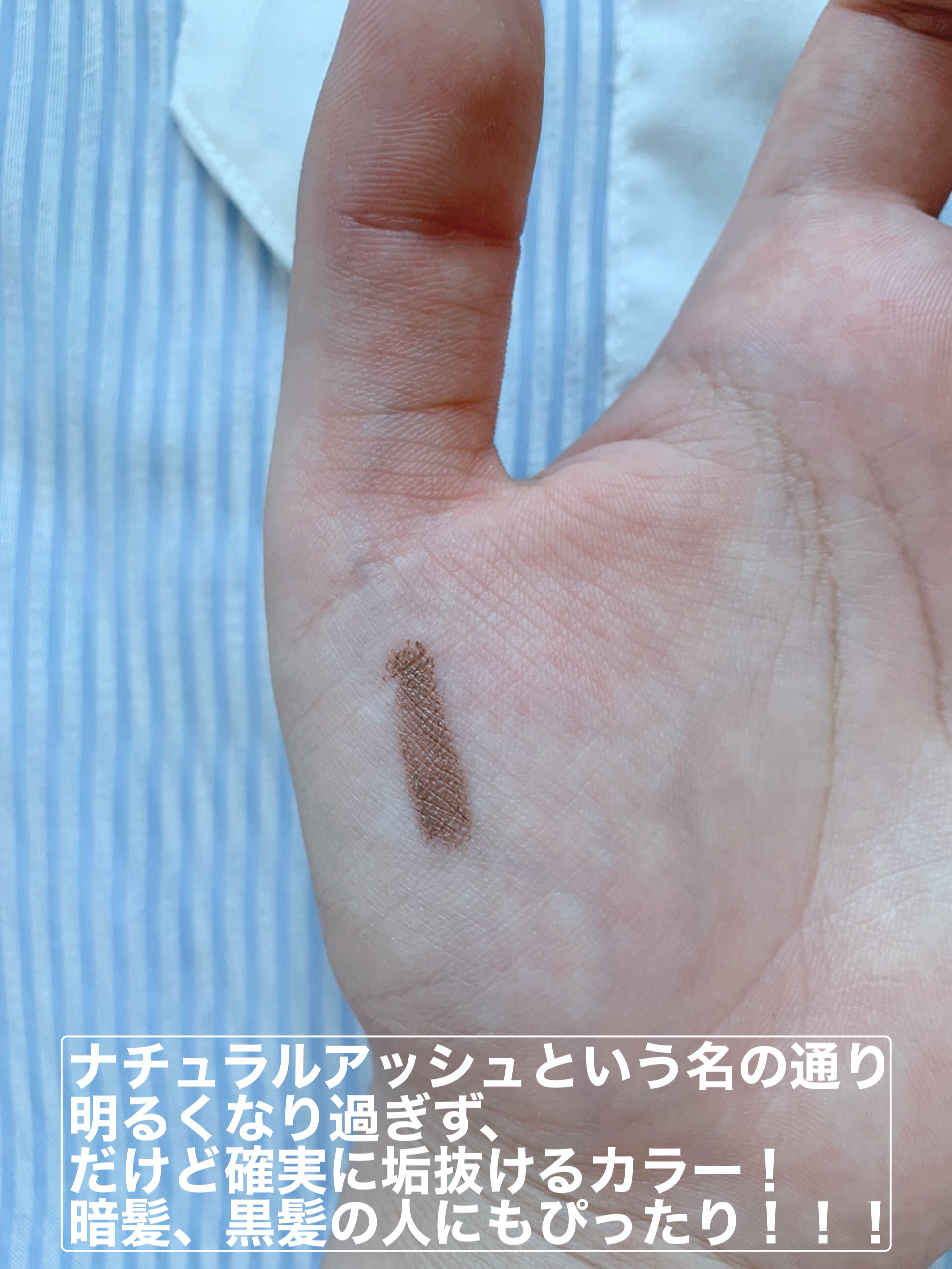 このカラーはナチュラルアッシュといいますが、普通のアッシュよりも暗めで黒髪の垢抜けカラーだと思います! 私の黒い眉でも1度塗りで色が変わってくれました! 色素が薄くなりますが黒髪との相性が抜群なんです🫧