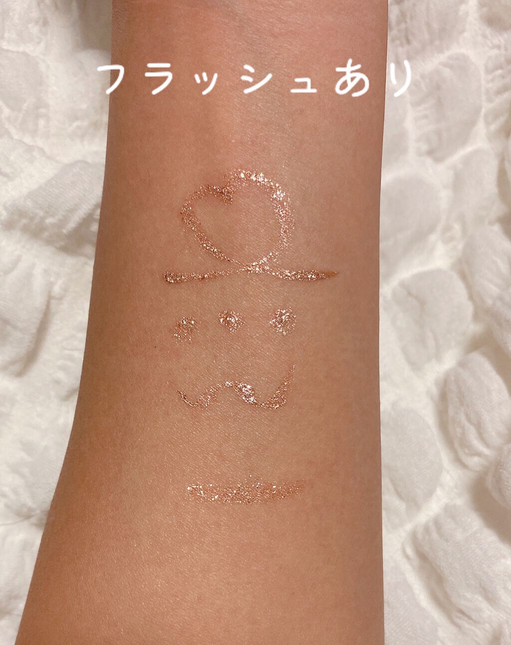 ちょこっと手の甲に付けてみたところとんでもなく良い感じにキラキラ発色して感動した 目頭、目尻、下瞼、、、どこに使っても良きアクセントになってキラキラ可愛いです 筆状になっていて、アイラインとしても使えるし、指に乗せて伸ばせばアイシャドウとしても使える使い勝手の良さ👐❤️