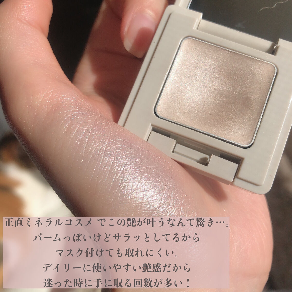 ナチュラグラッセ 明るさがある! 自然な感じ アイシャドウベースとして使うとツヤ感と、手持ちのシャドウに少し白みを足して明るく仕上げてくれます。 オルビス 色味はかなり馴染みよく、明るさというよりラメが目立つ感じがあります。 チークベースもついているのでよく使う人ならこちらがおすすめ。 部分使いする分には明るさが足されてよいです。 ナチュラルハイライト探しの旅をしてますがこういったクリームタイプを部分的に入れるより顔の広範囲に入れられてナチュラルに盛れるようなハイライトが、自分の求めるものなのかも…