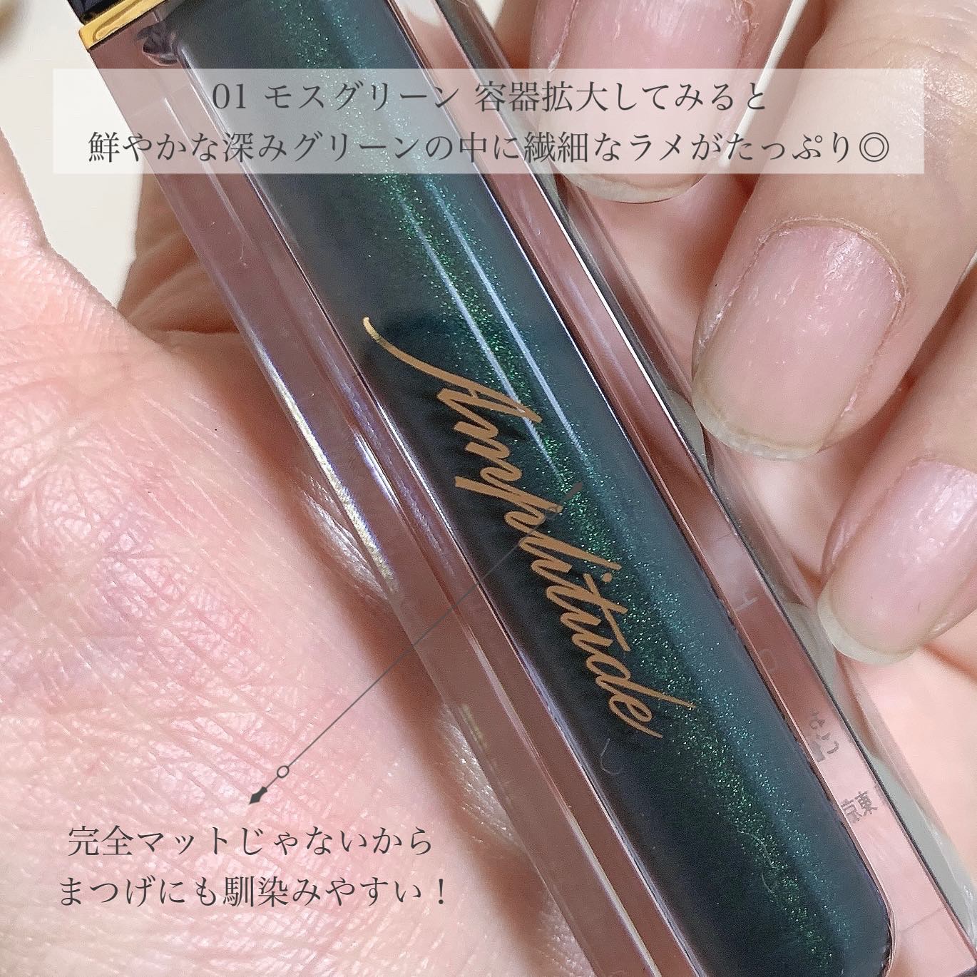 出社できるカラーマスカラ▼#Amplitude#エクストラボリュームカラーマスカラ01モスグリーン初アンプリはマスカラになりました。黒っぽさがあるのでアイシャドウの色もそんなに気にせず、黒の代わりに使える、良い色。出社できるカラーマスカラと...