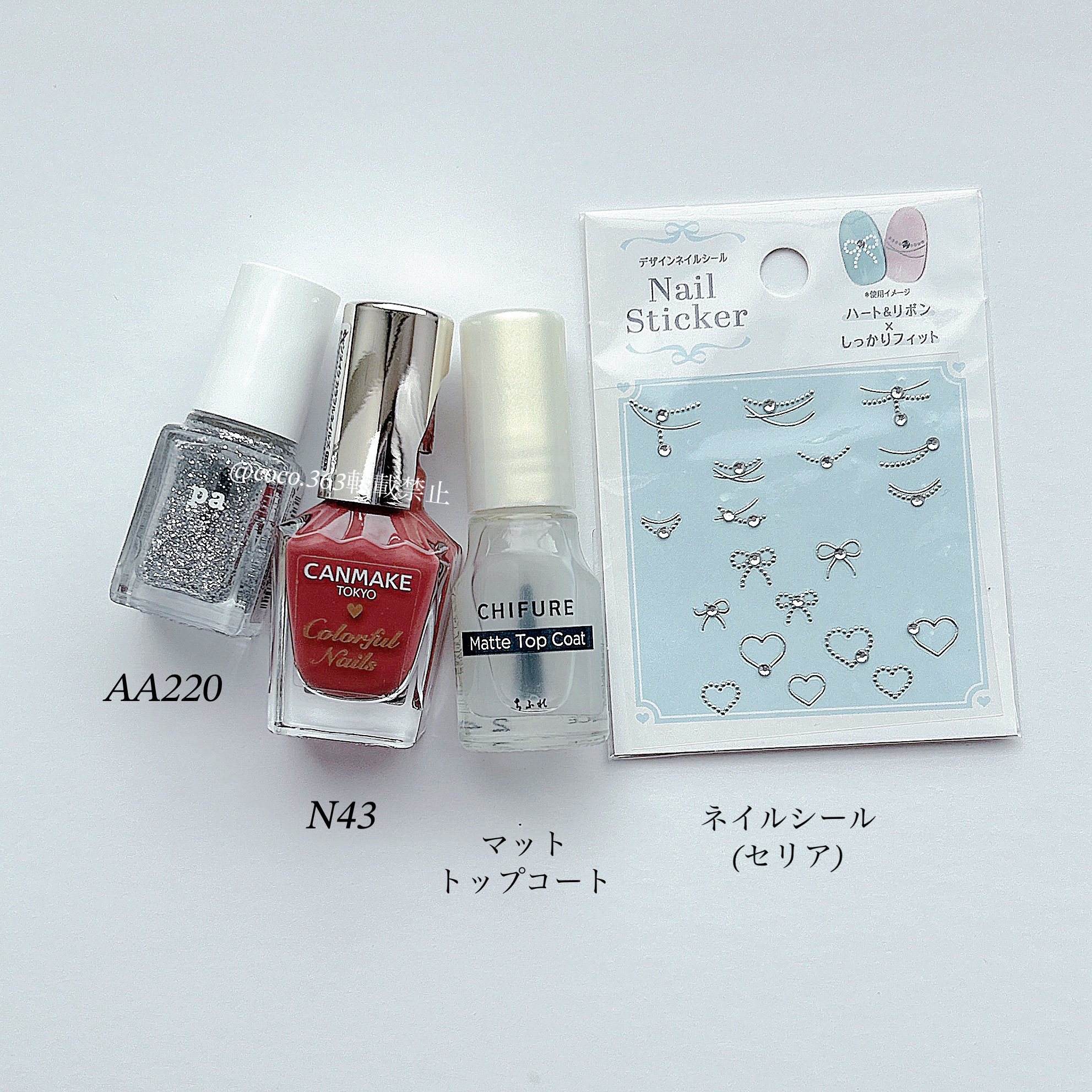 コーデのアクセントになる赤ネイル❤️パキッとした発色の赤ネイルを購入しました🥰かなり明るい色で原色に近い色味です🌹少し青みが入っている感じなのでブルベさんでも使いこなせる色だと思います❣️paネイルは1度塗りだとムラが目立つことがあります😰2...