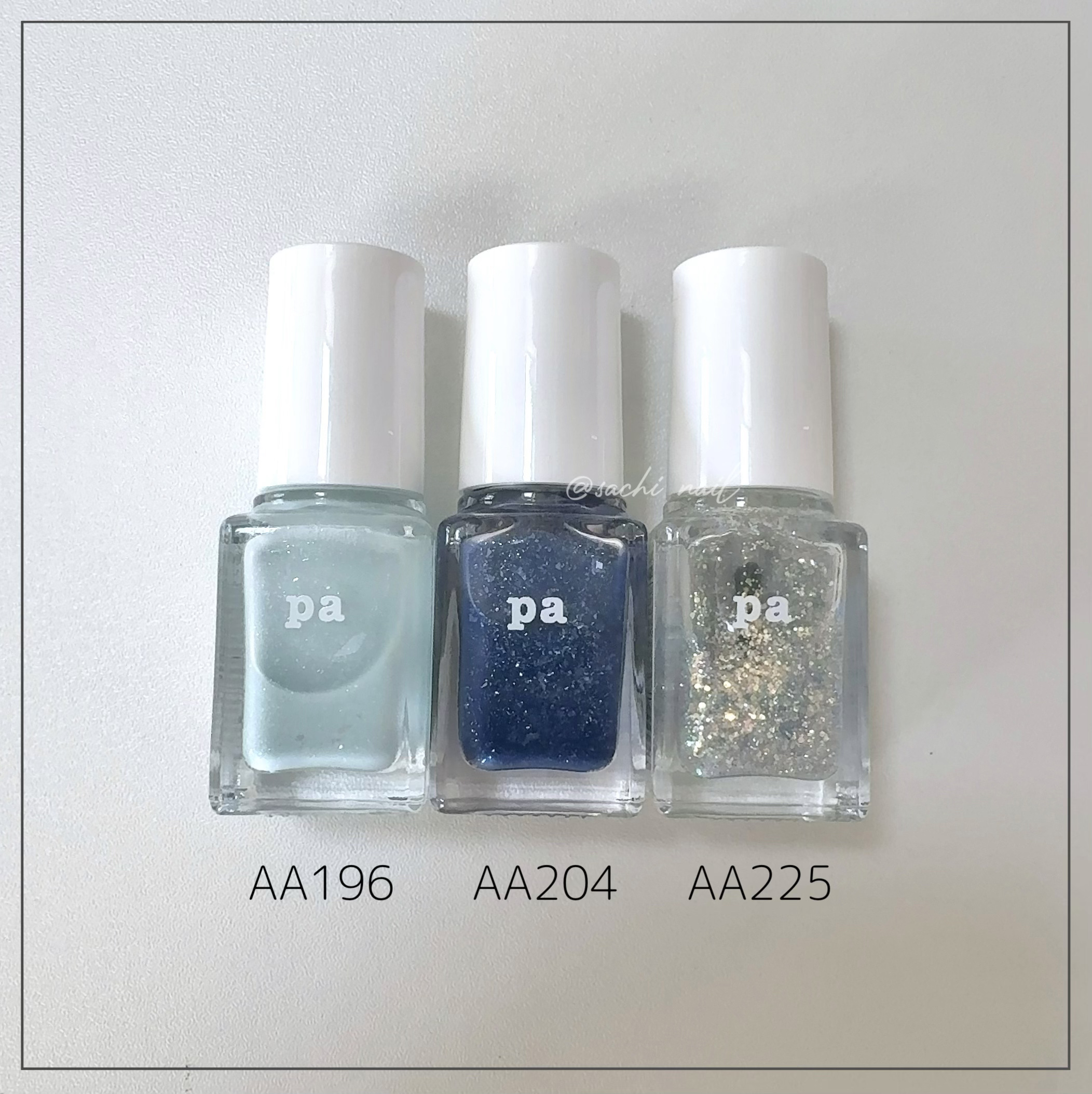 500円以下で買える//pa透明感増し増しブルーおすすめ4色🩵︎︎︎︎︎︎☑︎詳細は2枚目からスタート!くすみが程よい4色はブルベさんはもちろんイエベさんにも使いやすいブルーです🫶🏻※マットコートはちふれのものですpaネイルカラープレミアム¥440〚E011〛paネイルカラープレミア¥418〚P009〛〚AA196〛ネイルカラーワンコートフィニッシュ¥440〚F018〛〚AA196〛は購入品それ以外はpa様より提供pa新色全色スウォッチやその他のネイルデザインはこちらからどうぞ#cocopaネイル#pa#paネイルカラー#paネイル#E011#P009#AA196#F018#冬ネイル#冬ネイル2023#秋ネイル#簡単ネイル#青ネイル#ブルーネイル#自爪ネイル#ちゅるんネイル#シアーネイル#プチプラネイル#プチプラコスメ#透明感ネイル#セルフネイル#ネイル#ポリッシュネイル#ポリッシュ#マニキュアネイル#マニキュア#selfnail#nail#美甲#네일#ワタシを変えたコスメ3種の神器