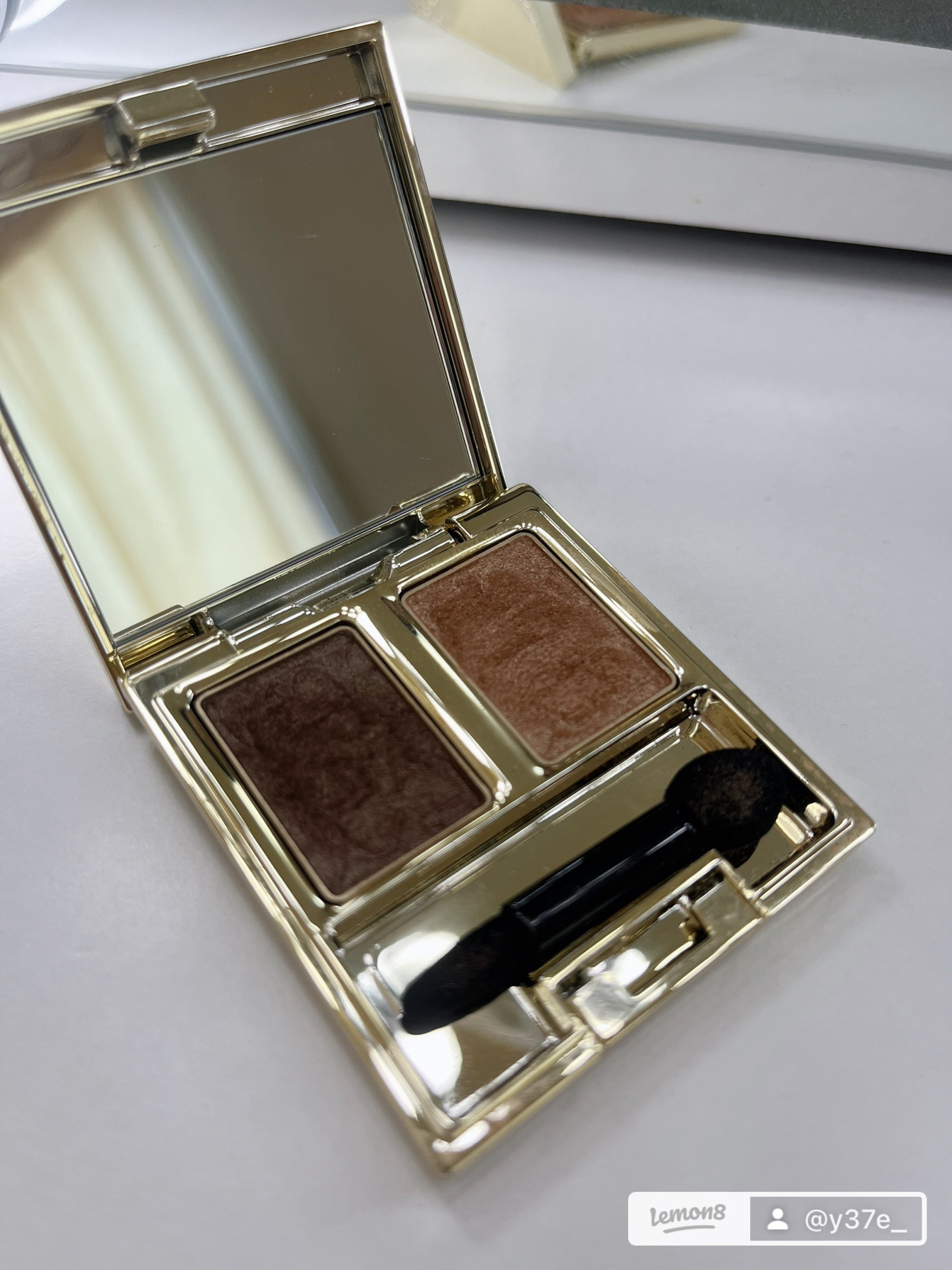 肌にとけこむ華やかな色と輝き。 瞬くたびにしっとりつやめく2色のアイカラー。 全てのパウダーにオイルを浸み込ませにごりのない鮮やかな発色と濡れたようなツヤを叶え 目もとを華やかに彩ります。 肌なじみの良い色のパールと色が調和することで、自然で美しいグラデーションが簡単にでき 上品な輝きのある印象的な目もとを演出します。 めちゃめちゃ発色がよく 濡れたようなツヤ感で 大人の女性にもつかえるアイシャドウ☺️ 2色なので物足りないかな?と思っていましたが 全くそんなことはなく むしろ私は1色でも十分なくらい 1つ1つがきれいないろです🥹 香りも良く、他の色も欲しくなっちゃいます🥰