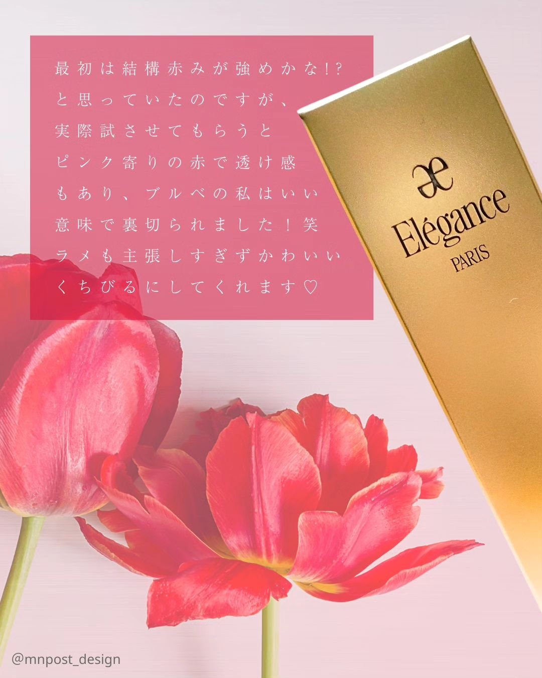 春のエレガンスはアイシャドウも可愛いけどリップもめちゃ可愛でした♡(アイシャドウも欲しい…笑)#春の新作コスメレポ@mnpost_desigのMNです。投稿をご覧いただきありがとうございます♡今回ピックアップする商品はこちら↓↓ー・ー・ー・ー・ー・ー・ー・ーEleganceエレガンス@elegance_cosmetics【ブリリアントルージュビジュー13】6g/¥3,500(税抜)ー・ー・ー・ー・ー・ー・ー・ーSNSとかで商品画像を見た時は結構赤強めかなと思ってたのですが、実際店舗でテスターさせてもらったらなんと!!可愛い赤ピンクで青みも感じて、ブルベの私は即、お気に入り購入しました。笑透け感とキラキラ光るラメも相まって、春っぽい可愛い印象のくちびるになれるリップです🌷気になった方はぜひチェックしてみてください!※色みなどのコメントはすべて個人の感想です。↓他の投稿はこちらから↓❣️@mnpost_design#elegance#elégance#エレガンス#エレガンスリップ#ブリリアントルージュビジュー#ブリリアントルージュビジュー13#デパコスリップ#春リップ#リップ#グロス#春コスメ#赤リップ#透け感リップ#デパコス購入品#デパコス#コスメ好きさんと繋がりたい#コスメ好きな人と繋がりたい#アラサー美容#コスメ垢#コスメレビュー
