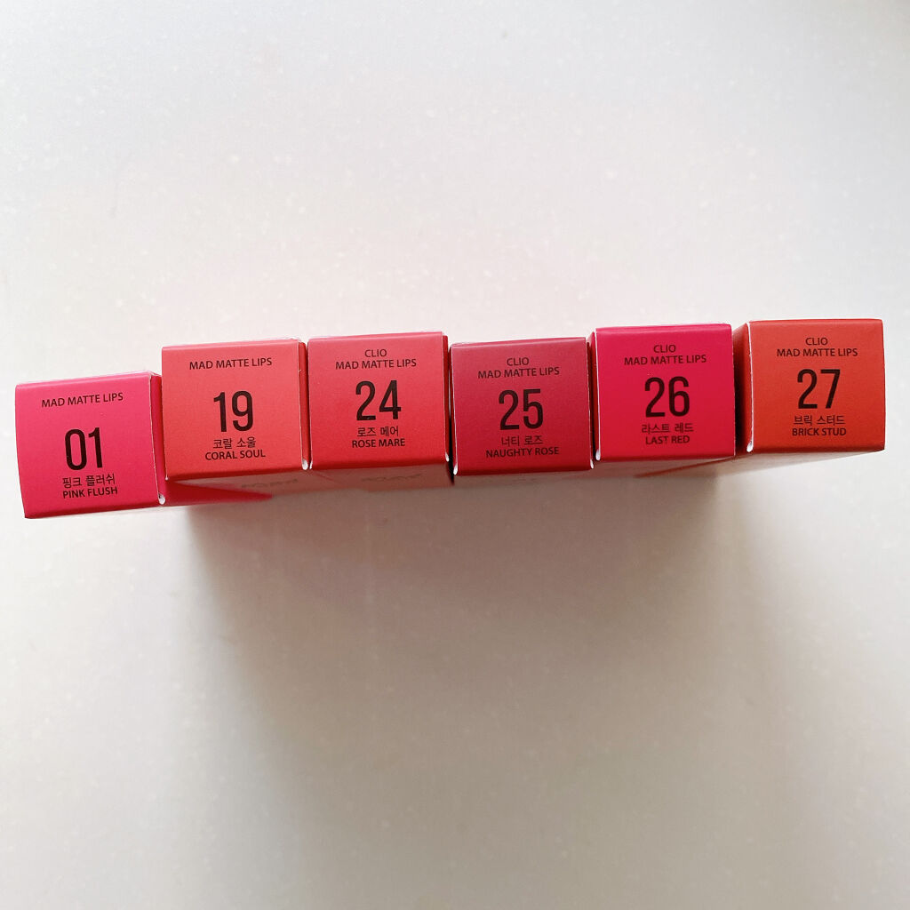 CLIOマッドマットリップ/01 PINKFLUSH02 SUNLITORANGE03 REDSUPREME05 RUSSETROSE07 BAREITALL10 CRIMSONROSE12 PERKYROSE16SWEETGUAVA17SOURLYCHEE18DEEPCRANBERRY19 CORALSOUL22 PINKHUSH24 ROSEMARE25NAUGHTYROSE26LASTRED27BRICKSTUD最近お気に入りのマットリップ❤️スフレのような感触で軽いつけ心地くすみカラーで使いやすい💄お気に入りは10番でセールでちょっとずつ買い足してます✨Q10にも公式ショップがあるのでメガ割でまた買い足そうかな〜と❤️#CLIO#マッドマットリップ