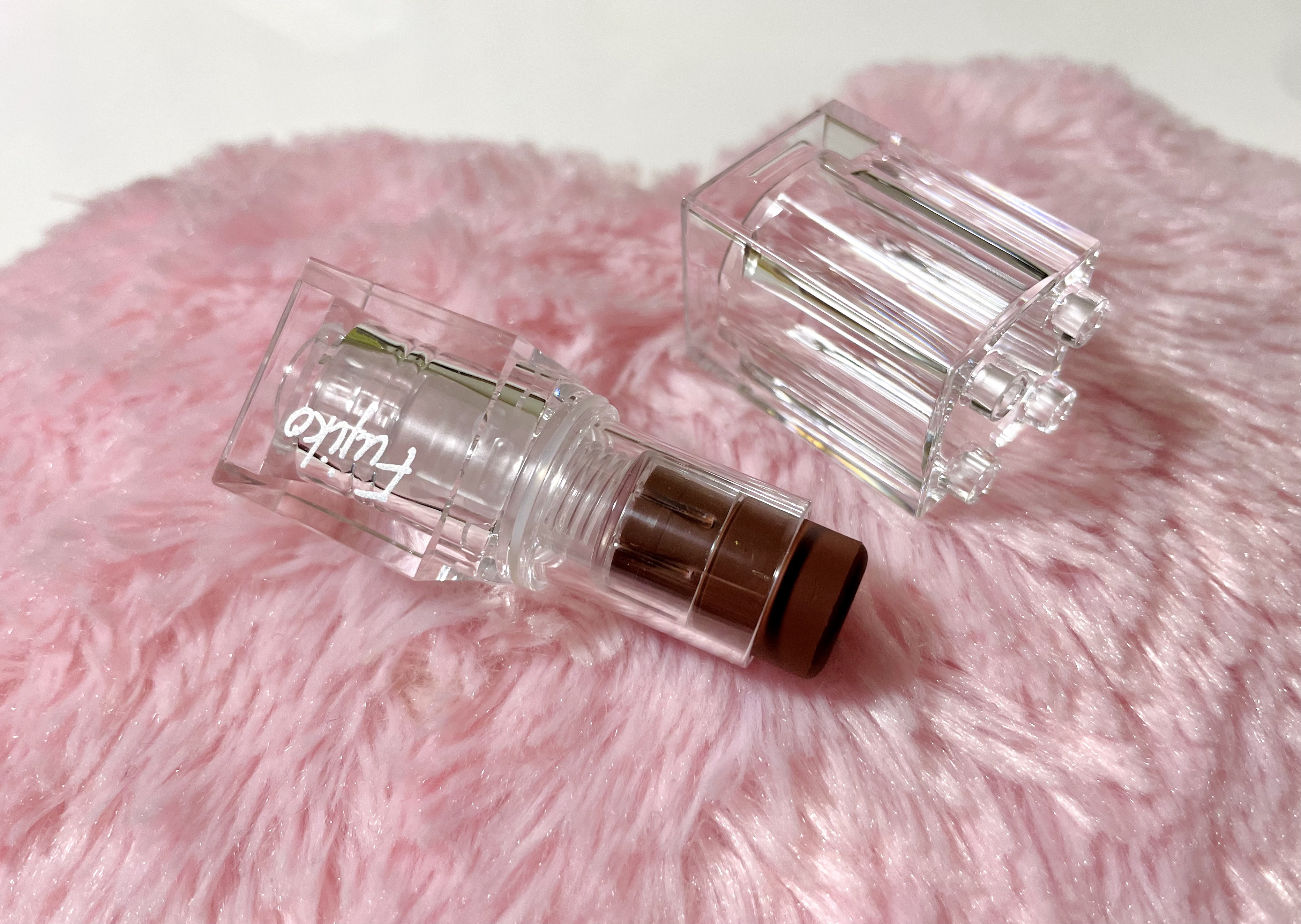 ちょっとだけ面倒くさかったのか、がさつな面が出たのか、、 全然意識せずに、ルージュを一番下まで下げずに蓋を閉めたんです…… このFujikoのミニウォータリールージュは、ルージュ自体が柔らかくてくっつきやすいし、本体が小さめだからか隙間が浅めなのもあって、少し出ているとこんなふうに裏側にくっつく可能性があります⚠️ 透明だから、蓋のくっついたのが目に見えて分かったのが良かった🥺透明じゃなかったら次使うまで絶対気が付かないでいた……