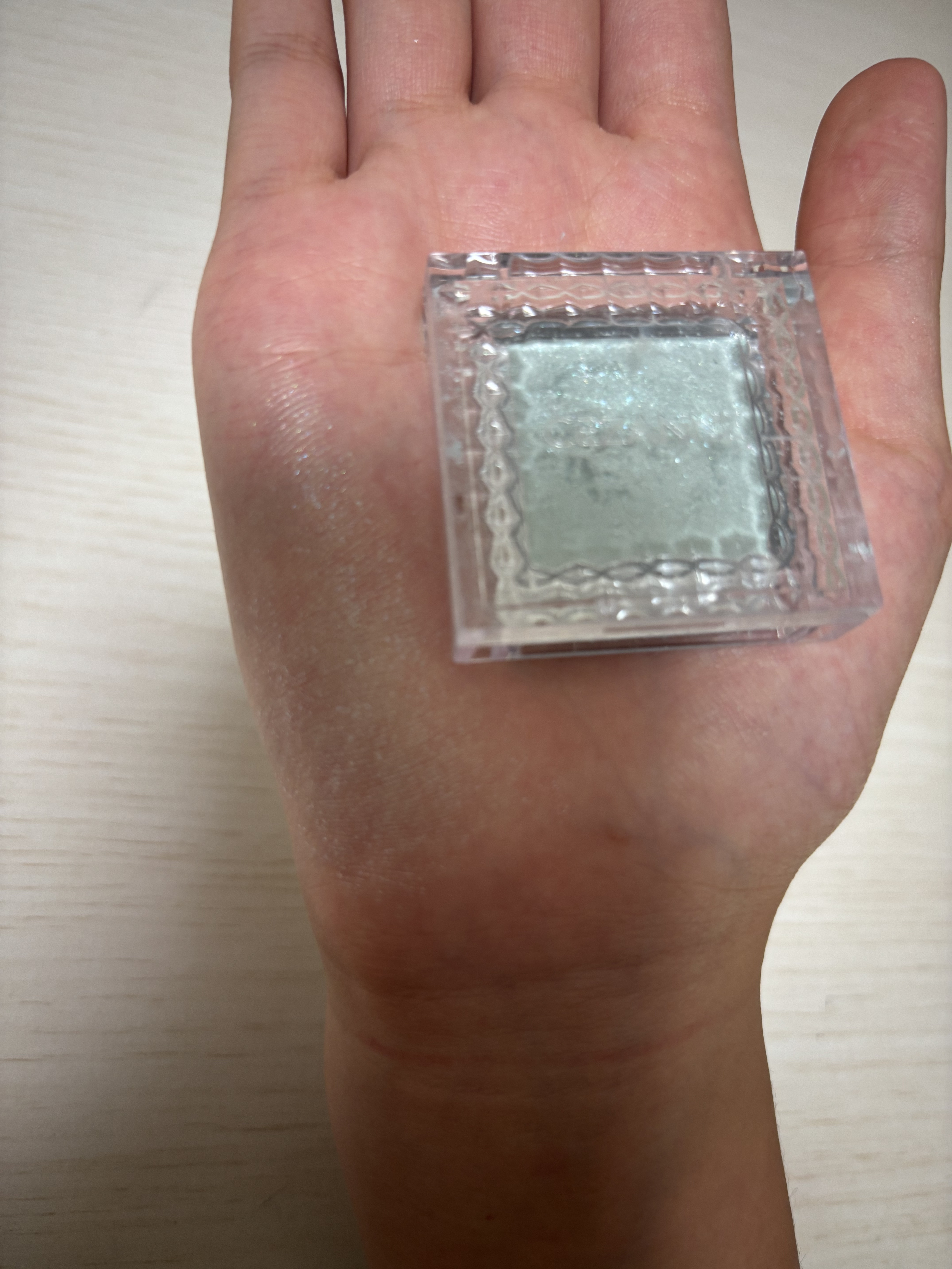 透明感がある発色で大小のラメがたっぷり入っています。光の加減でキラキラ艶々💕ラメが綺麗です👏🏻 肌のくすみを光で飛ばして目元の透明感をアップさせてくれるような気がします。 涼しげな目元に仕上がり夏にもぴったりなんですが、アイメイクの仕上げに上まぶた黒目上に指でぽんぽんラメを目立たせていつもとはひと味違う目元を季節問わず楽しんでいます✨ サラサラしっとりな感じの粉質そんなに粉飛びするとは思いませんでした🙂