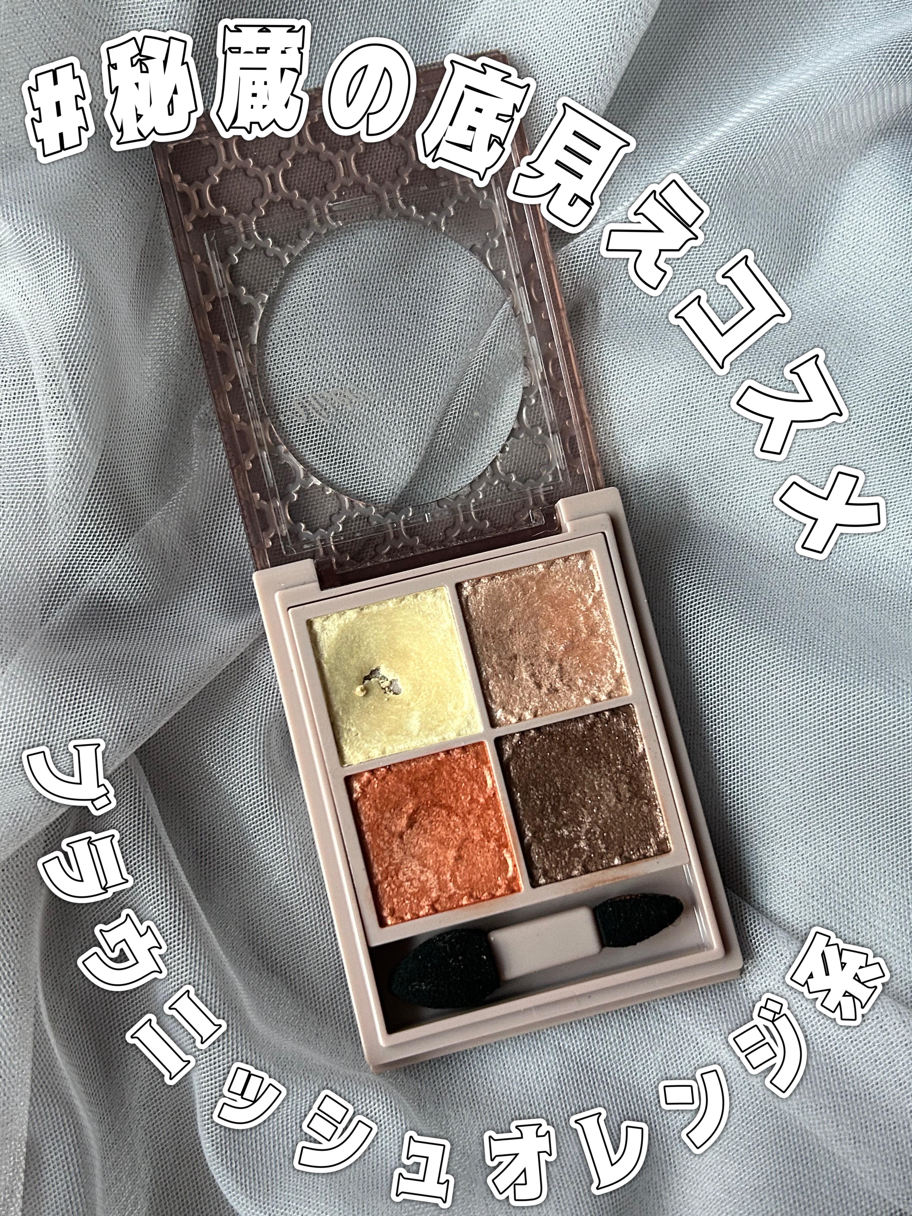めっちゃ粉質がいいし、オレンジとブラウンは発色が凄くいいよ! ゴールドラメはあまり主張しすぎず、瞼のくすみを飛ばしてくれるし綺麗に見せてくれる😍 ラメもそこまで強くないから、ニュアンスメイクっていう感じかな とにかくオススメだよ!!