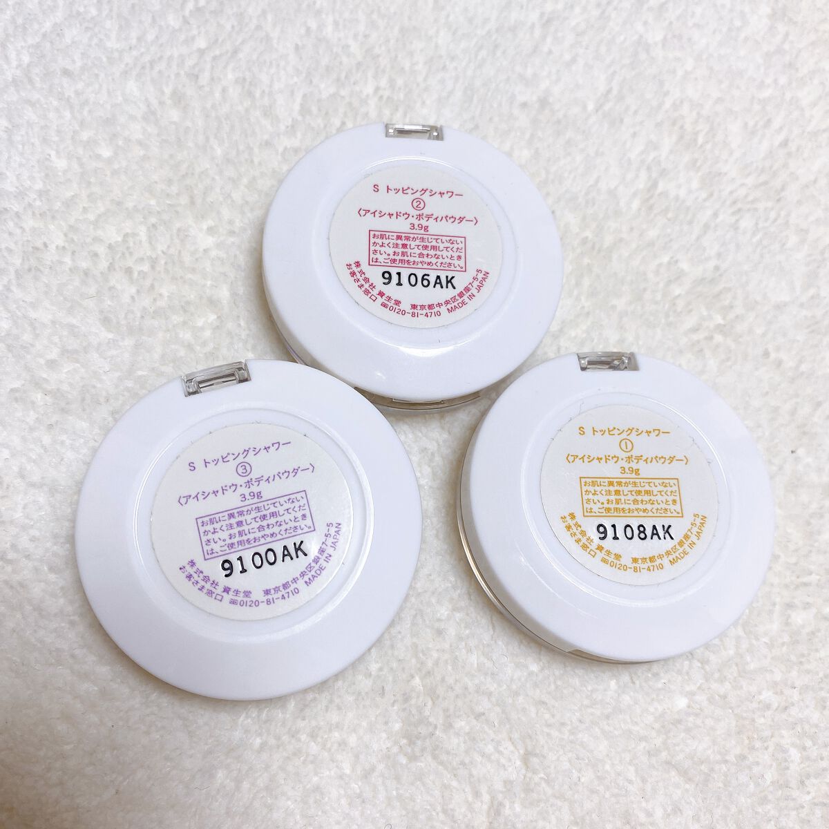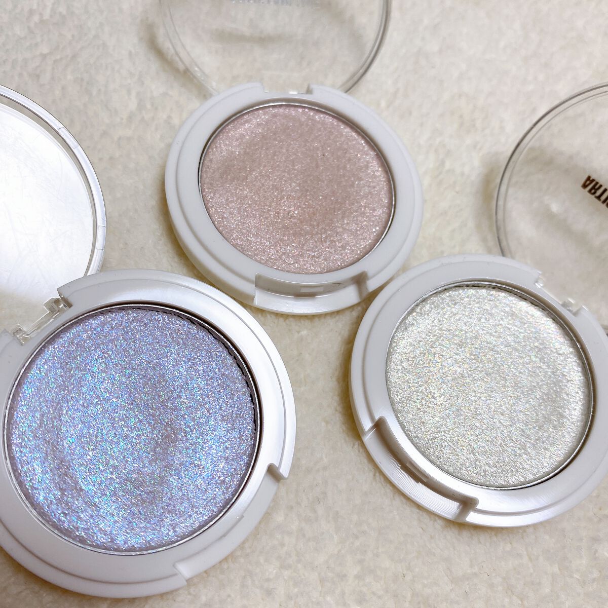 ARTISTARMAKECOSMETICPRESSクリアにキラめく新感触パウダー目元やボディにみずみずしいきらめきのヴェール透明感ある輝きが続く新感触パウダースフレのようなしっとり柔らかい感触でラメがピタッと肌に密着。つけたての仕上がりが続きます。高輝度ラメ配合で透明感のあるキラめきを演出します汗や涙に強いウォータープルーフタイプです。1MilkWhite2PeachPink3CassisPurple正直肌に乗せちゃうと分からない😂パケは全然違います!(3枚目参照)ラメがとても綺麗です!選べなくて3つ買いました!でも気になったカラーだけでイイかも笑笑本当に綺麗なラメでずっと見てられる♡笑笑思ったよりも控えめで使いやすいです♡タピオカ感は全く感じませんがコスメとしても優秀です!せっかくならパケに鹿のマーク入れて欲しかったなあ#映えコスメ #タピオカミルクティ#プチプラ#セルレ #多色ラメ #キラキラアイシャドウ#なななのセルレコレクション