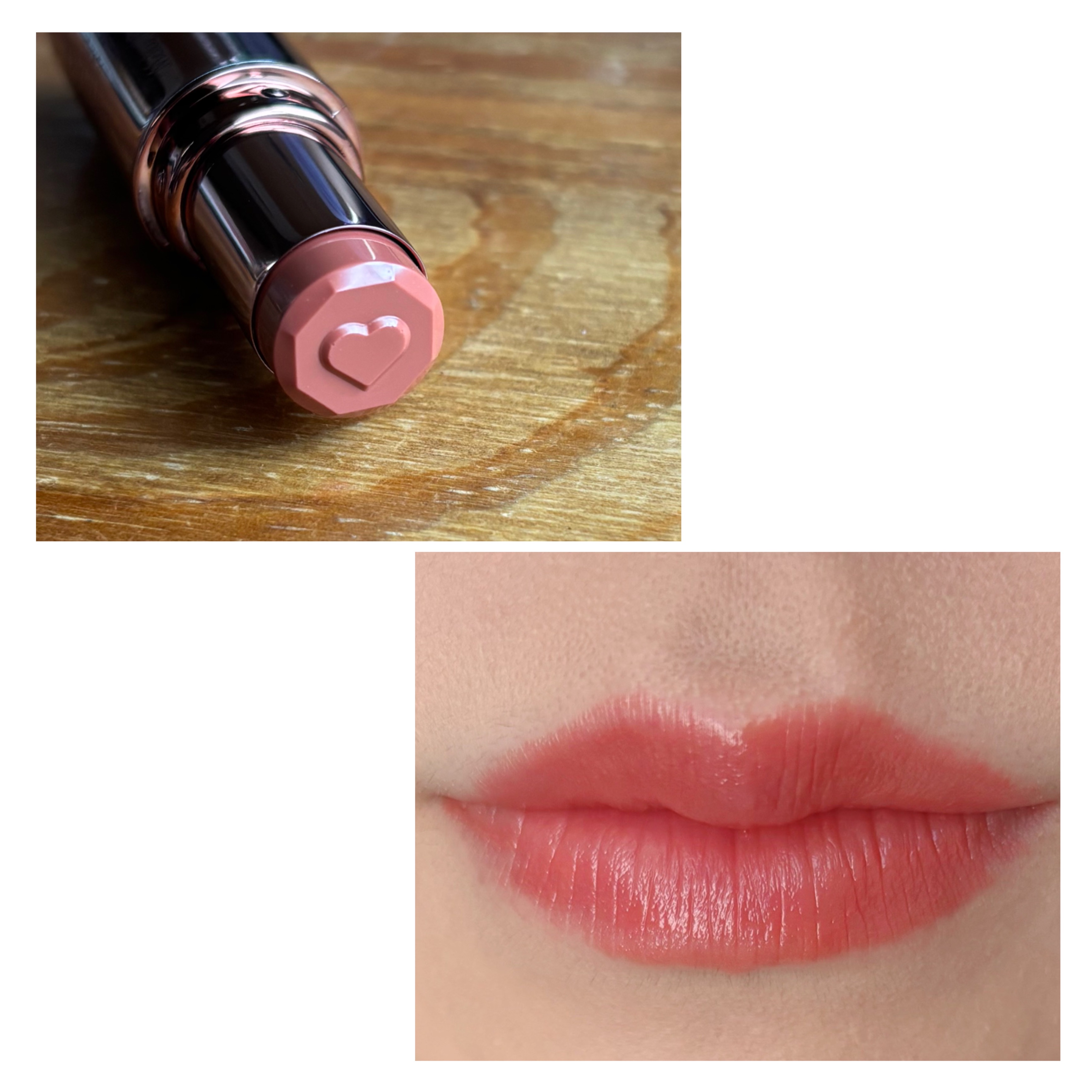 コンパクトでポーチに入れてかさばらず とってもいいですね🙆 ハートのデザインがかわいい♥️ なんだか使うのが もったいなくなっちゃいます🤣 ほんのり色づいて 顔色が明るくなる感じがします😆