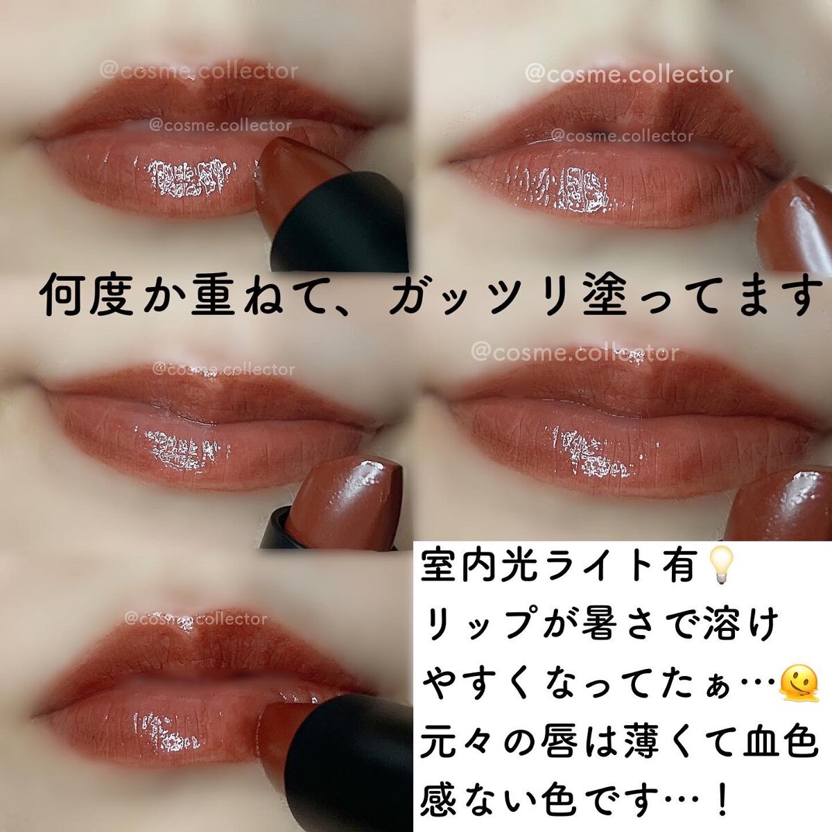 ガッツリ塗るとつやんつやんになって、発色も増すのでメイクの主役にピッタリ👑 公式の色より実物は赤みがあって使いやすいなと思ったよ🙌🏻 お洒落な色味 官能的なツヤで個人的に乾燥もしにくかった。 艶が好きな人におすすめ(シアータイプ) シアーでぼかしても可愛いしガッツリ塗ってもきまる! マット、サテン、シアーの質感と大量のカラバリで似合う1本が必ず見つかる✨ シアーなタイプはムラにならないように塗るのが大事! 手から滑らない様にマットなパケだけど、汚れやすい💦 落ちにくいタイプではない(マットタイプとかだとより落ちにくいかも?)
