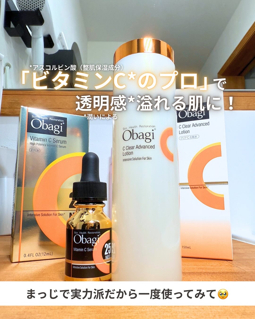 ビタミンC*1ならオバジ使って!!/乾燥によるくすみが気になる、潤いによる透明感あふれる肌になりたい🥺そんな人はこの2つ!!どちらも浸透技術すごいの!!✨本当に出会ってよかった神アイテムだよ😇============オバジCクリアアドバンスローション4,950円(税込)============浸透感に優れたビタミンC*1配合の化粧水。とろみがあるんだけど、肌にのせるとスッとなじんでしっとり!肌全体にうるおいが行き渡るような感覚がして、乾燥肌さんも大満足の保湿感があるよ🩵水まんじゅう肌って言われた所以がわかる気がする🧐柑橘系の香りはリフレッシュ気分でスキンケアできちゃう🍋============オバジC25セラム ネオ11,000円(税込)============「肌に効くことが全て。」というブランドプロセスさながらの高濃度*2ピュアビタミンC*1が配合された美容液。まっじで実力派でした。サラサラオイルっぽいテクスチャーで肌に乗せるとじんわり温かさを感じたよしばらく使い続けてみるとキメが整ってきた感じが…🥹💕ピリピリや刺激が気になる方は乳液やクリームの使うといいんだって!最後に使うのに浸透*3するなんて、技術すごすぎない?※ピリピリや赤みが長引くような場合は使用を中断してね⚠️化粧水も美容液も「ビタミンC*1のプロなのでは?」と言わんばかりの技術が詰まった逸品✨買って損はないと思える神アイテムです🥰※敏感肌さんはビタミンC*1の濃度低めの美容液から挑戦するのがおすすめだよ!ぜひチェックしてみてねー!🔍*1アスコルビン酸(整肌保湿成分)*2オバジシリーズ中アスコルビン酸(整肌保湿成分)をもっとも多く配合*3角質まで #美容液#ビタミンC#ビタミンC化粧水#ビタミンC美容液#Obagi#オバジ#Cセラム#lemonsquare🍋