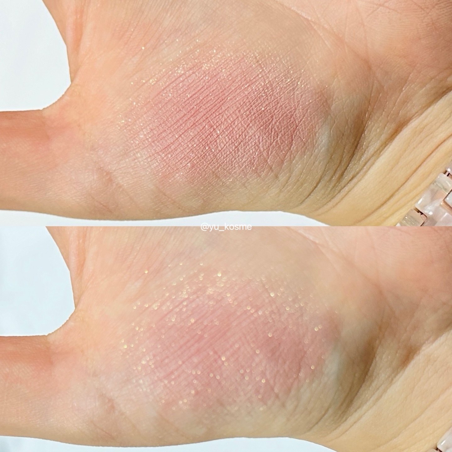 ふわっとした柔らかい発色で、失敗しにいく! 大きめのブラシでふわっとつけるといい感じにツヤが出ます🫧 透明感と上品なツヤ感が唯一無二のデパコスの白みピンクチーク。 テクスチャーもしっとりしているので、粉飛びの心配なし! 微かに細かいラメも入っているのでハイライト代わりにも使える万能チーク