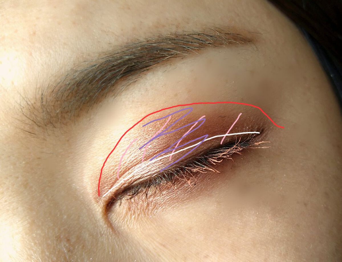 ウィッチーズポーチのパレットの薄いピンクを上下瞼に塗って上から濃いピンクを重ねる。 パレットの真ん中のブラウンで上下瞼にアイライナーのように引きます。 ウィッチーズポーチのアイシャドウにボビイのラメを足すとかなりレベルが上がる😂💓