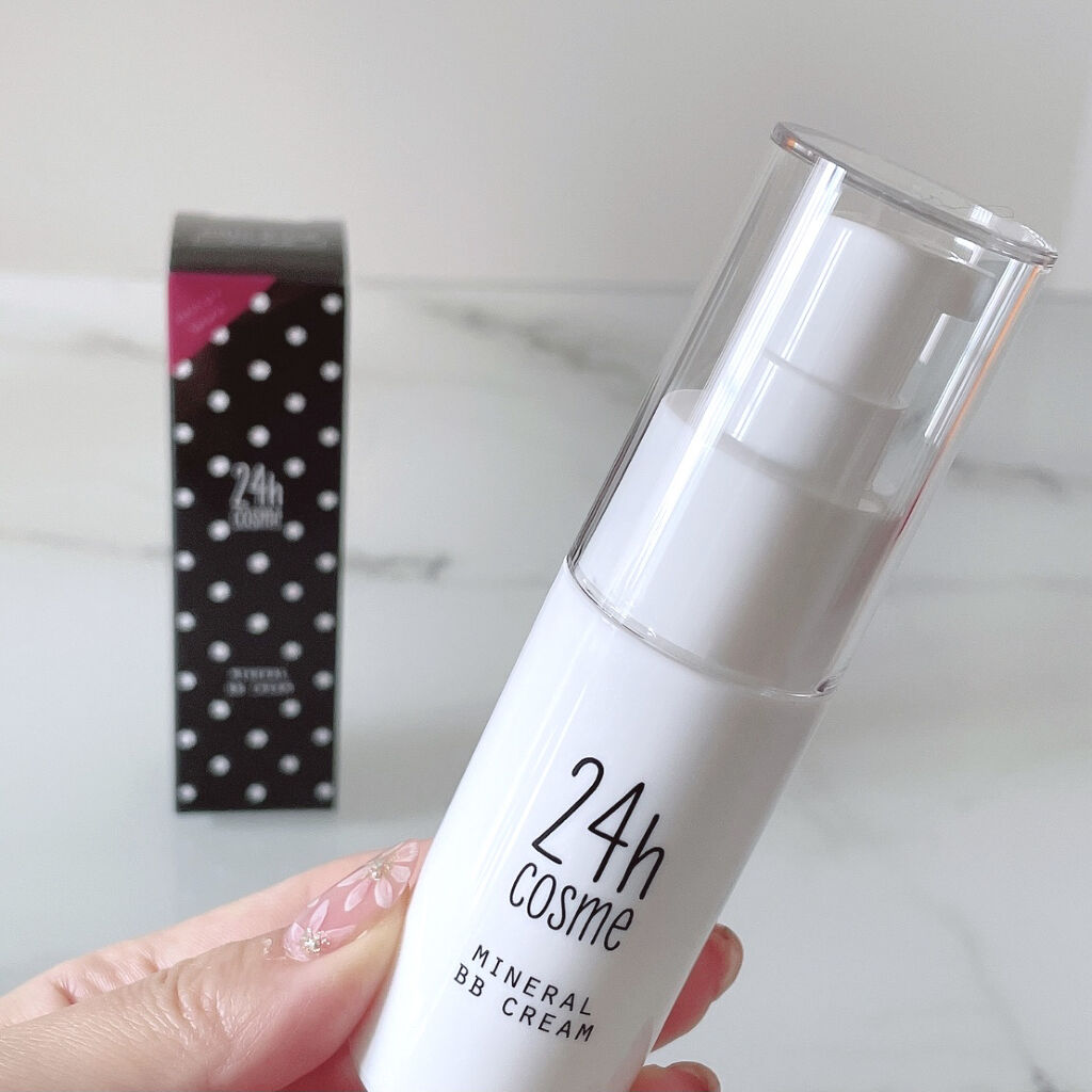 24hcosme『24ミネラルBBクリーム』を使ってみました!24hcosmeは24h落とさなくてもOK!なほどお肌に優しいコスメ♡お肌の負担になる成分を排除しお肌への優しさを追求したコスメなので肌の弱い方やファーストメイクやベビーやキッズに頬ずりするママメイクにおすすめ(*´˘`*)!24ミネラルBBクリームは肌に優しい天然由来成分で作られたBBクリーム!SPF30・PA+++ライトとナチュラルの全2色展開です!これ1本で日焼け止め下地ファンデーションが完了するBBクリーム♡忙しい時や時間がない時BBクリームは時短になるし頼っちゃってます(*´艸`*)こちらのBBクリームは天然由来成分だけで作られていて余計なものが入っていない分伸びが悪いので普段の倍くらいの量を私は使用します。カバー力はしっかりある方だと思います!ただ、私は塗っているときの香り?におい?がちょっときつく気になります。>_<。石鹸でオフできるくらいお肌に負担なく使えるのでテレワークでおうちにいる時用として使いたいです!#24ミネラルBBクリーム#24hcosme