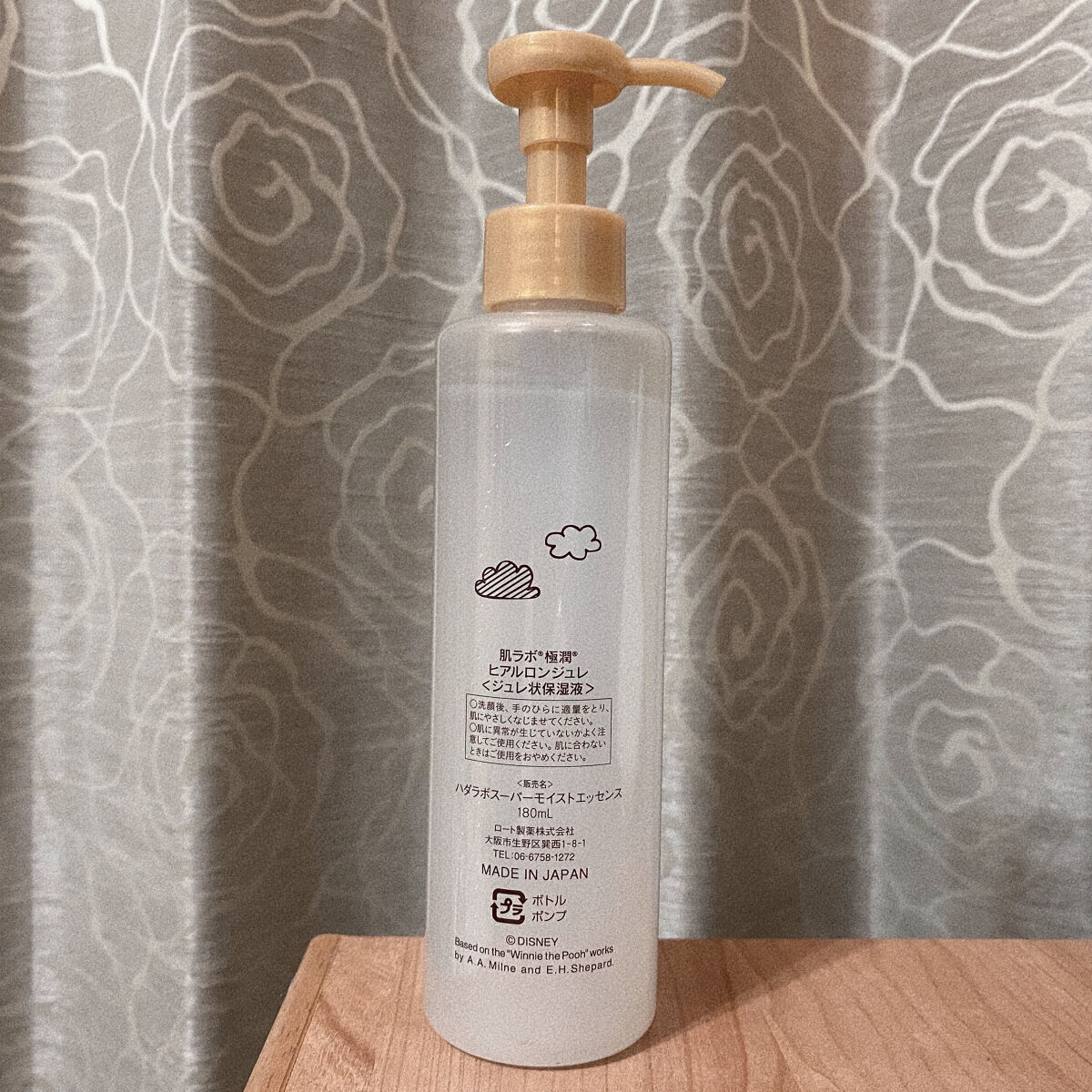 肌ラボ極潤ヒアルロンジュレ 180ml実はこの前ドラッグストアに行ったらこちらの商品くまのプーさんデザインがあってあっ!私購入してから使ってないwということで使ってみました。オイルカプセル型ヒアルロン酸5つのヒアルロン酸配合。1品で4役化粧水...
