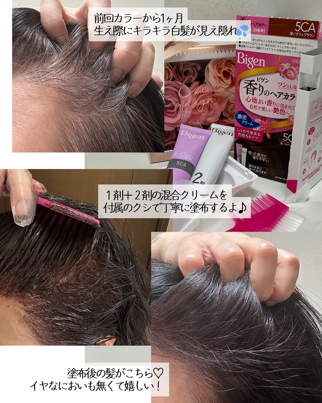 【#PR】ビゲン香りのヘアカラー〈クリームタイプ〉5CA深いカフェブラウン☕️染めている間も、染めた後もあのツンとしたニオイが気にならない!根元&生え際の白髪にピタッと密着するテクスチャーが快適で、落ち着いた色味も気に入ってます🤎#白髪染め#ビゲン香りのヘアカラー#セルフカラー
