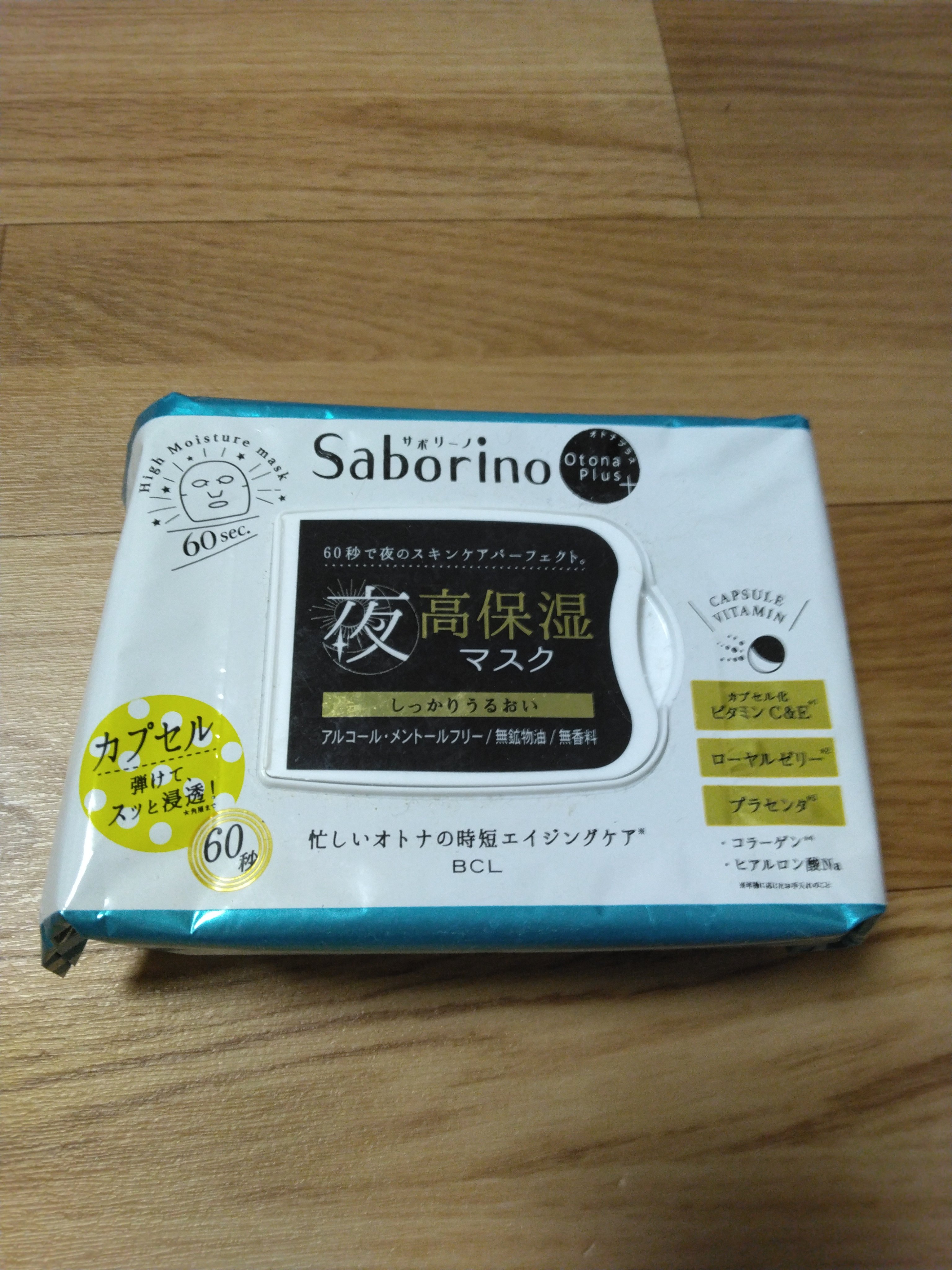 #使い切りコスメBCLサボリーノオトナプラス夜用チャージフルマスク「化粧水+乳液+美容液+クリーム+パック 5in1のパーフェクトマスク」60秒でOKみたいだけど5-10分やると効果的って書いてある私は素早さは求めてないのでゆったり10分くら...