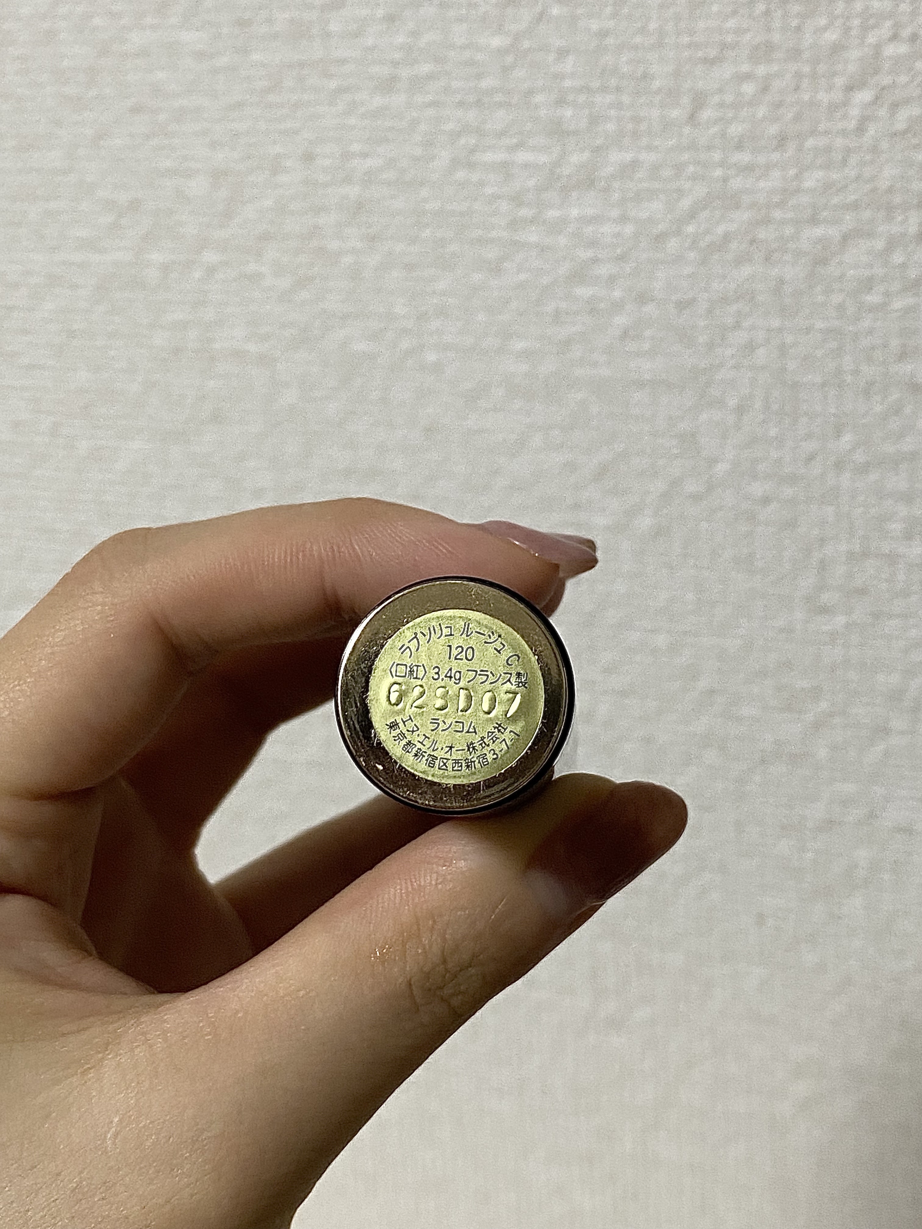 ランコムのクリスマスコフレに入っていたラプソリュルージュc120💓私の肌の上では黄みを帯びた柔らかなコーラルレッドって感じに発色します🥰肌馴染みよく、可愛らしい印象になるので、日常使いしそう🌼ランコムのリップは唇に乗せると、するするとろけるように色が乗るのが心地よく好きです。そして海外の高級コスメらしい香りも。もしかしたら若干好き嫌いあるかも。(わたしは好きです)肝心なマスクへの影響ですが、ティッシュオフすれば表面の油分が取れてサラッとするけど(色も割と残る)、マスクには色づきます😅飲み物飲むくらいならリップは取れないけど食事すると取れるかな。(なのでアンプリのリップコート使ってます😊)あとキャップの取り方が変わってるから最初戸惑う人多いかも!普通に引っ張ってキャップをとるのでなくて、パケの上部に描かれてる花のモチーフの部分をぐっと中に押し込むと、スティックのお尻がぴょん!っと飛び出る仕組みです。↑伝わるだろうか。からくりチックな開け方も好き💓