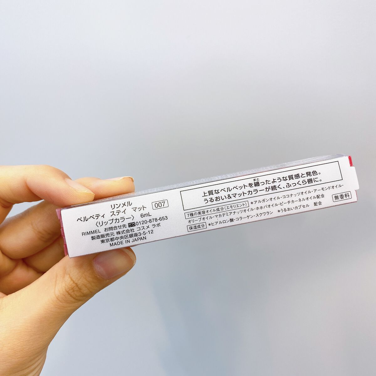 リンメルベルベティステイマット/005007008パッケージが黒くてオシャレ中のカラーも見やすいし色落ちしにくいリップです#リンメル#ベルベティステイマット#RIMMEL