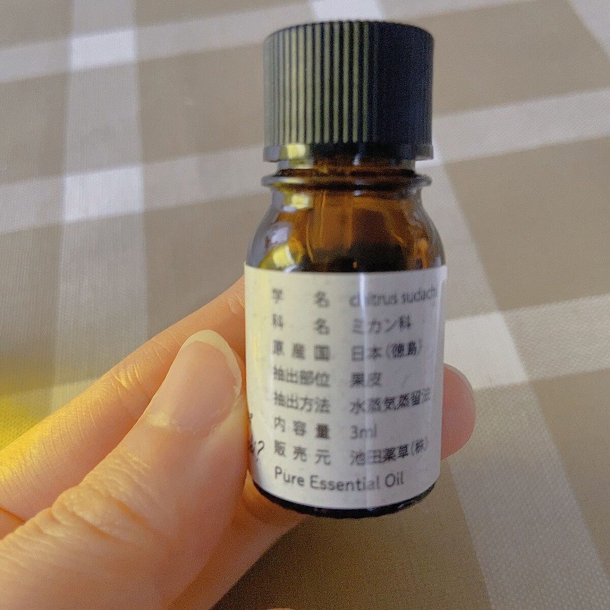 池田薬草様の、国産すだちアロマエッセンシャルオイルを使ってみました!化学香料や合成香料を使用せず、徳島すだちの果皮から抽出した和の精油。すだちの精油成分にはリラックス効果や前向きな気持ちにする効果があるそうです🕊そしてアロマディフューザーやアルコールスプレーの香りづけにも使用できる他にマスクの香りづけにも!!してすだちの精油成分はさわやかで良好な香りで、リラックス効果や前向きな気持ちにしてくれる効果があるとのことなんです!!!アロマディフューザーで使用してみようかと思っていましたがまずは毎日使用するマスクにつけてみました🕊