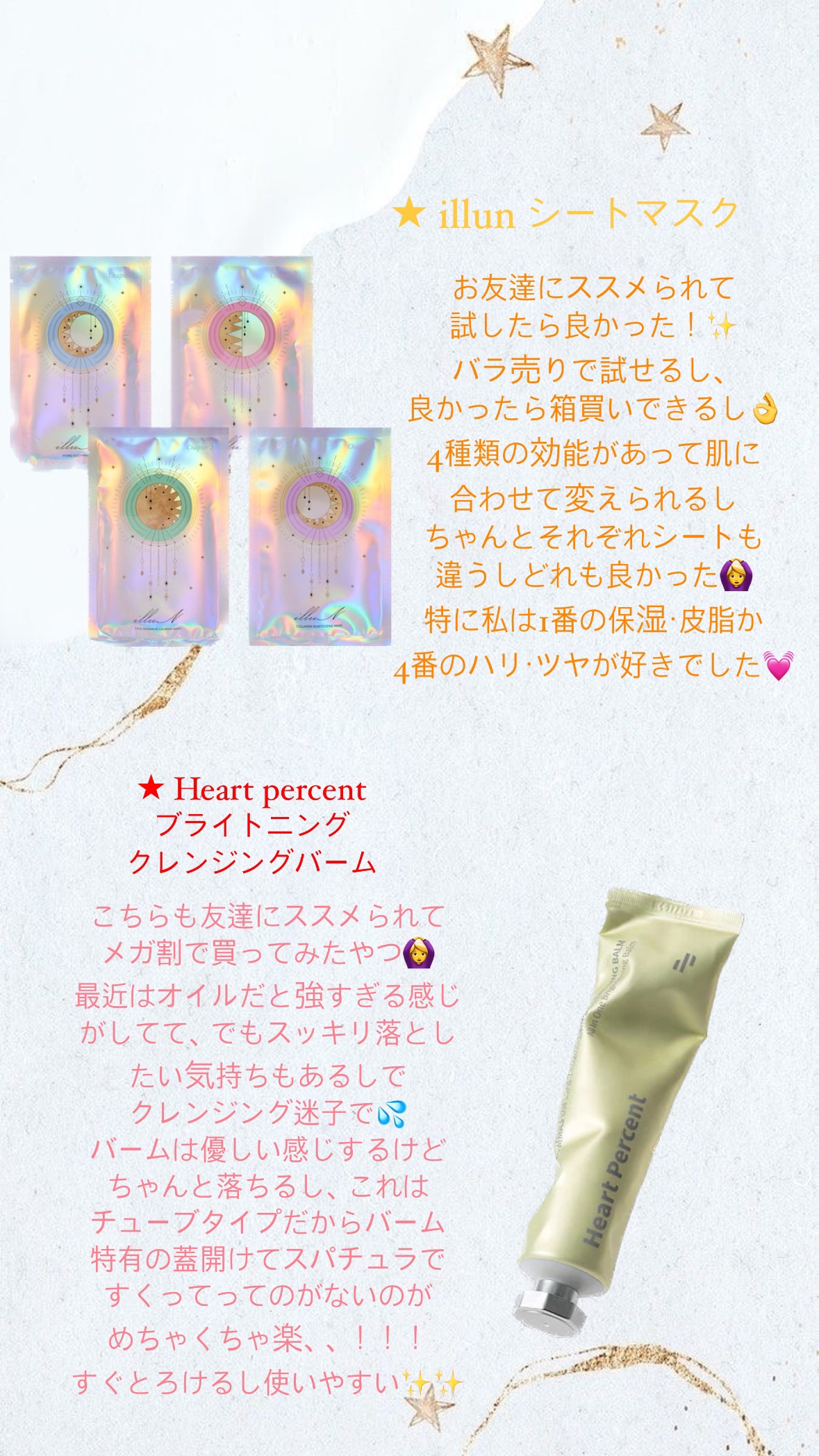 今年は正直、投稿ちょっと(いやだいぶ) サボっちゃって😭 たくさん買ってはいたけど 載せてないのがたくさんあります🥹 ①SHISEIDO エッセンス スキングロウ ファンデーション 160 Shell ②YVES SAINT LAURENT BEAUTE クチュール ミニ クラッチ #100 ストラ ドールズ、 #400 バビロン ローズ ③CLARINS リップ パーフェクター 17 インテンス メープル ④M・A・C プレップ プライム 24 アワー エクステンド アイ ベース ⑤illuN チャプター4 コラーゲン エラスティサイジング マスク ⑥Heart Percent コンマス オン ライフ エッセンシャル クレンジング バーム でも、ファンデ・アイシャドウ・リップは 迷わずコレ!!!ってくらい 私の中ではHIT商品でした🥇 まだアイシャドウにときめくことが できるのか🤦♀️って感じでした😂❤️