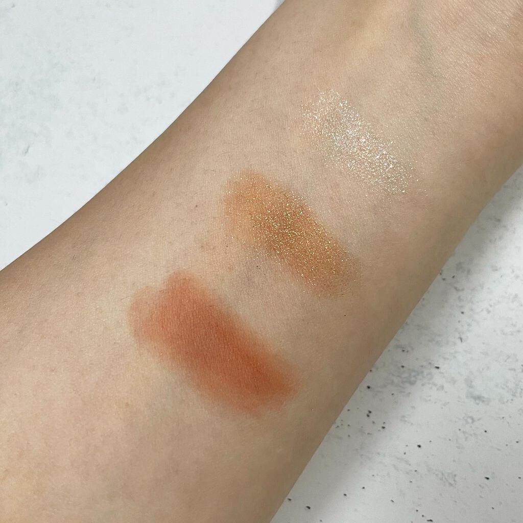 マット、ラメカラーともに発色ばっちり。 マットはぼかしやすくて、ブレンドしやすく、使いやすいです。 ラメも細かくて、繊細な輝きがきれいだし、肌にのせると密着して落ちてこないのがうれしい!✨ 1番気に入っているのは、#CHARD と#MARTINの組み合わせ。 秋っぽい、深みのあるブラウンメイクができます🎶 とくに#MARTINのイエローっぽいカラーが他ではなかなか見ないのでお気に入り🎶