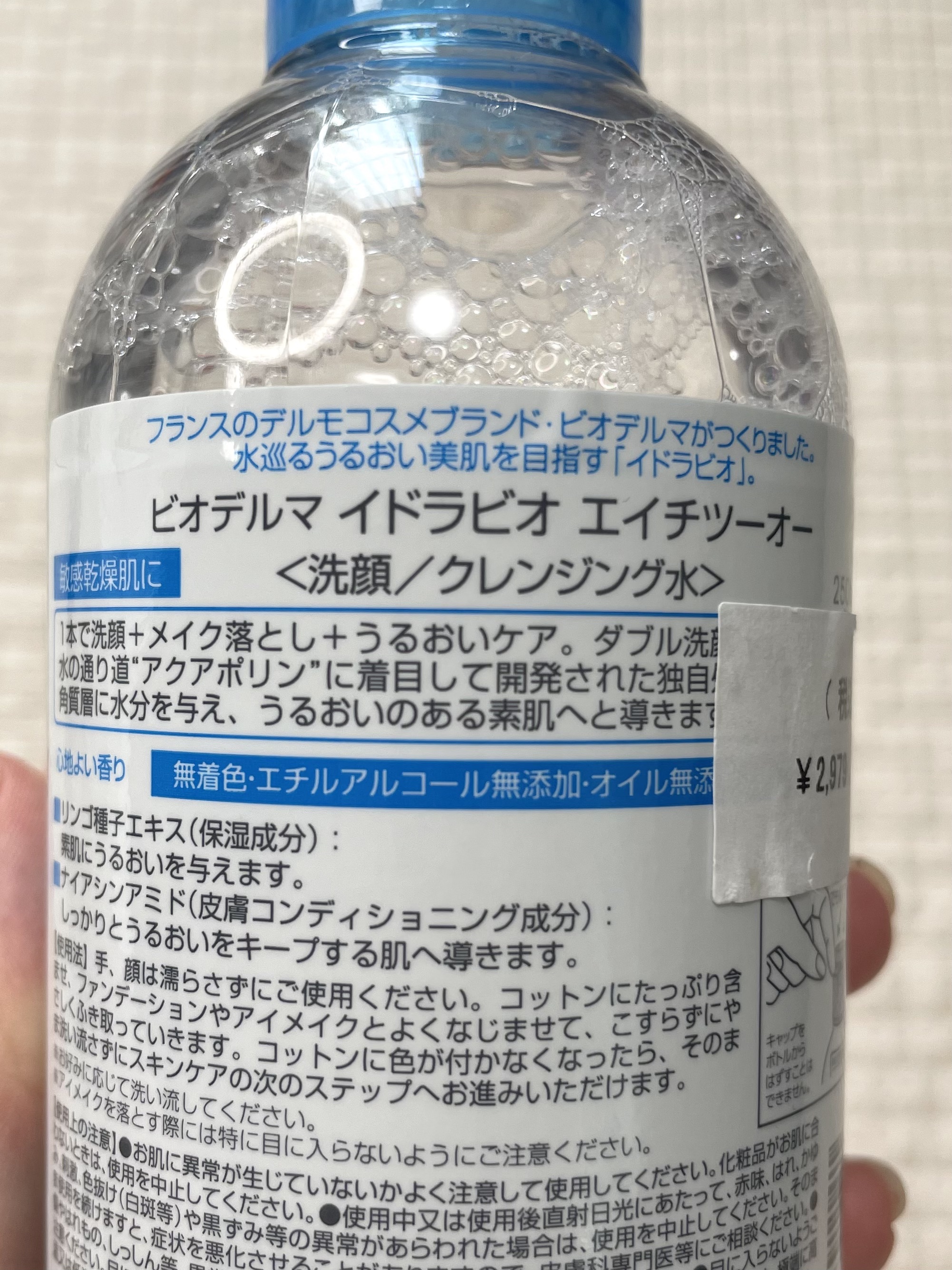 ビオデルマ イドラビオエイチツーオー1本で洗顔+メイク落とし+うるおいケアダブル洗顔不要皮膚に存在する水の通り道アクアポリンに着目して開発された独自処方アクアジェニウムが角質層に水分を与えうるおいのある素肌に整えるフランス製コストコはたっぷり500ml×2本セット肌がつっぱることなく潤いさっとメイクがキレイに落とせる手、顔は濡らさずに使うコットンにたっぷりよくなじませてこすらずやさしく拭き取るリンゴ種子エキス配合で素肌にうるおいを与えるナイアシンアミド配合でしっかりとうるおいをキープする無着色、エチルアルコール無添加、オイル無添加、パラベン無添加、弱酸性見ていただきありがとうございます(^^)