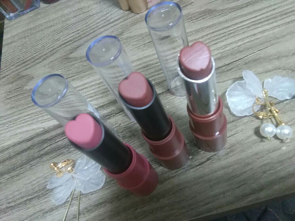 テクスチャーは硬めで滑りが悪い💦しかしハートの形が唇の形にフィットして塗りやすい 塗りっぱなしだと少しまだらになりやすく、程よい艶感があり保湿もそれなり(o'∀'人) ティッシュオフするとマットよりになり、それでもまあまあ保湿感あり