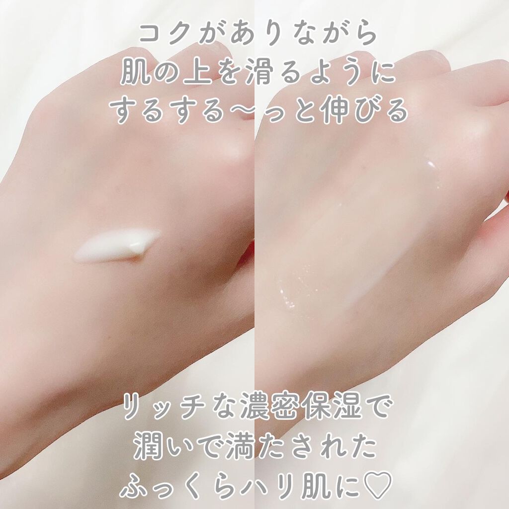 カスタードクリームのような美容液。リッチに濃密保湿。ぷるんとハリ肌へ。↑↑↑公式サイトでの一文なのですが本当にこれ。その通りって感じです。見た目も質感もカスタードクリームのよう。美容液と呼ぶには濃密濃厚すぎやしないか?というくらいの濃密濃厚さ。その見た目からこっくり、もったりしてるのかな?と思ったらこれが大間違いだった。コクがありながらも肌の上を滑るようにするする〜っと伸びていく。みずみずしくて重たさも感じないけど保湿力が高くリッチな使用感。【リッチピューレ】という美容液なのですが『名が体を表している...!』と思いました。洗顔後にこれだけでもOKだしスキンケアの仕上げに使用してもOKと使い勝手も良いのが嬉しい。乾燥するこれからの季節。暖房の効いた部屋で過ごしカラカラに乾く肌にはこのくらいリッチな美容液が安心感があって◎今回インスタのプレゼントキャンペーンに当選して頂いたのですが、ゴリゴリに気に入って、ゴリゴリに使っていますw