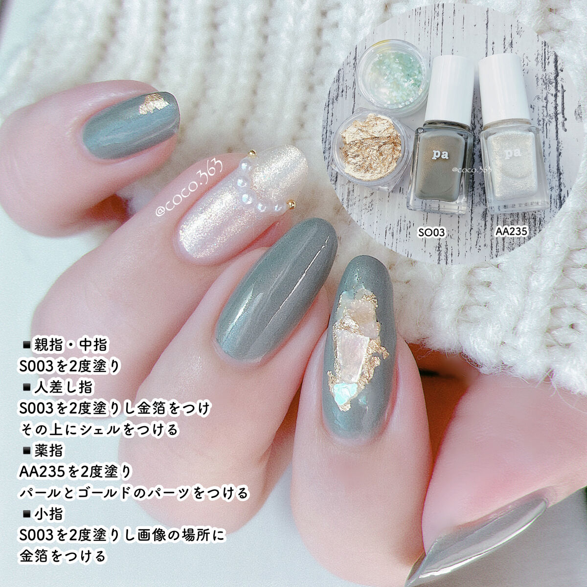 やわらかピスタチオカラー〚paネイルカラーS003〛を使用した春ネイルのご紹介です𓂃𓈒𓏸𑁍✓つくり方と使用したカラー等は4枚目と5枚目からどうぞ肌なじみのよいやさしめグリーンにゴールドの微細なラメが入った〚S003〛軽やかな仕上がりなので春にぴったりな1本です⸜🙌🏻⸝ホワイトパールベースにゴールドラメ入りで妖精のような愛らしさの〚AA235〛差し色にもワンカラーにもおすすめ🫶🏻この度、paネイル様(@pa_nail)の2023年公式アンバサダーを務めさせていただくことになりました✨1年間どうぞよろしくお願いいたします☺️ネイルのまとめはこちらから#cocopaネイル#pa#paネイル#paネイルカラー#春ネイル#春ネイル2023#春コスメ#グリーンネイル#ピスタチオネイル#キレイめネイル#簡単ネイル#上品ネイル#セルフネイル#ネイル#ポリッシュネイル#ポリッシュ#ラメ大調査