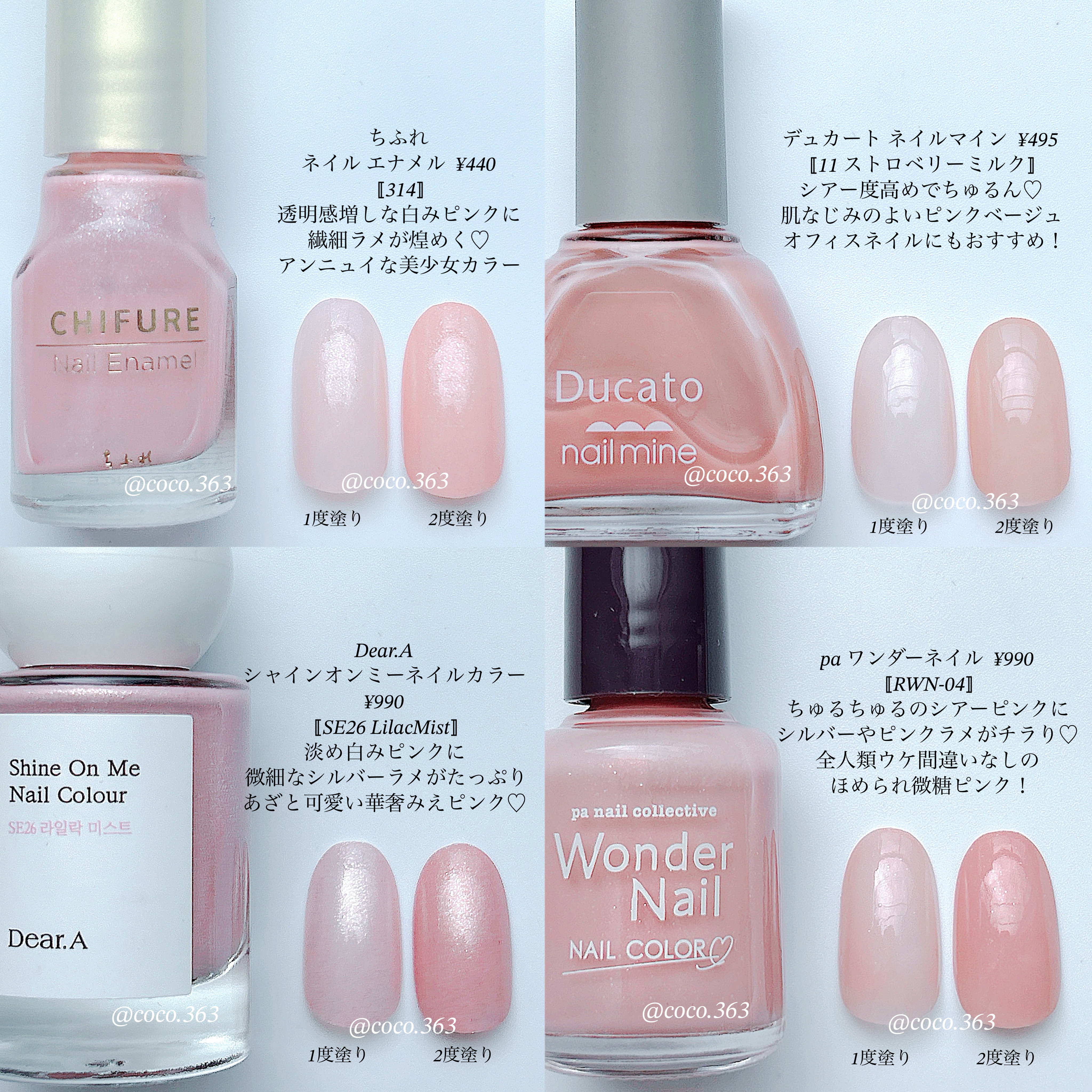 100均とプチプラマニキュアだけ💅🏻普段使いしやすい!ほの甘美爪ピンクおすすめ8選💓︎︎︎︎︎︎☑︎詳細は2枚目からの画像でどうぞGENEネイル(ダイソー)¥110〚パールベビーピンク〛ネイルホリック¥330〚PK808〛paネイルカラー¥330〚S022〛キャンメイクカラフルネイルズ¥396〚N08ミスティモーヴ〛ちふれネイルエナメル¥440〚314〛デュカートネイルマイン¥495〚11ストロベリーミルク〛Dear.Aシャインオンミーネイルカラー¥990〚SE26LilacMist〛・Dear.A様より提供paワンダーネイル¥990〚RWN-04〛・DearLaura様より提供オフィスにもおすすめな優しい印象の爪先になるおすすめピンク8選です🫶🏻ネイルのまとめは↓↓↓からどうぞ♡#coco100円ネイル#cocoNAILHOLIC#cocopaネイル#cocoキャンメイクネイル#cocoちふれネイル#cocoデュカートネイル#ダイソー#ネイルホリック#paネイル#キャンメイク#キャンメイクカラフルネイルズ#キャンメイクネイル#ちふれネイル#デュカートネイルマイン#dear_a#夏ネイル#ピンクネイル#オフィスネイル#お仕事ネイル#ちゅるんネイル#シアーネイル#簡単ネイル#ワンカラーネイル#透明感ネイル#プチプラコスメ#プチプラネイル#ネイル初心者#100均ネイル#セルフネイル#ネイル#ポリッシュ#ネイルポリッシュ#マニキュア#selfnail#nail#美甲#네일#垢抜ける方法#垢抜ける#垢抜けアイテム#Myあか抜け記録