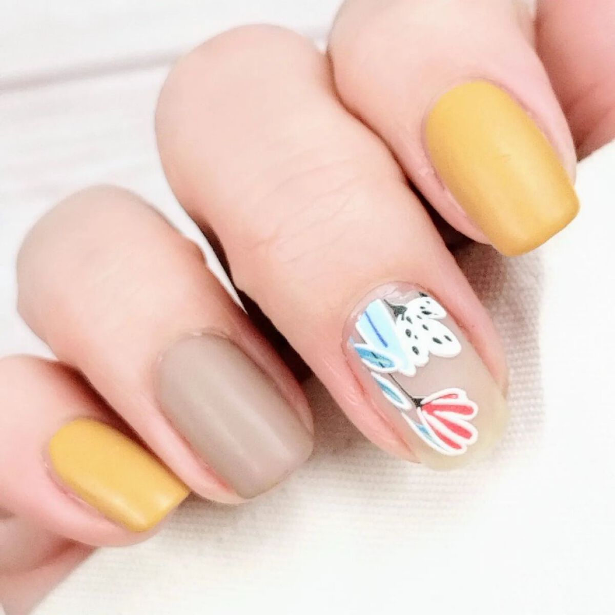 ポップなお花のネイルシールとマットトップコートでレトロかわいくなった😊シールはSHEINで買いました👍️●PLAYFUL(プレイフル)アップデートネイル・pun-02ミモザ・pun-10ミルクティー●uka#カラーベースコートゼロ10/0●ちふれ・マットトップコートN#セルフネイル初心者#ポリッシュ派#ポリッシュネイル#セルフネイル部#ポリッシュネイル部#セルフネイル練習中#配色ネイル#プレイフルネイル#プレイフル#プレイフルアップデートネイル#レトロネイル#北欧ネイル#北欧風ネイル#ポップネイル#簡単ネイル#簡単ネイルデザイン#マットネイル